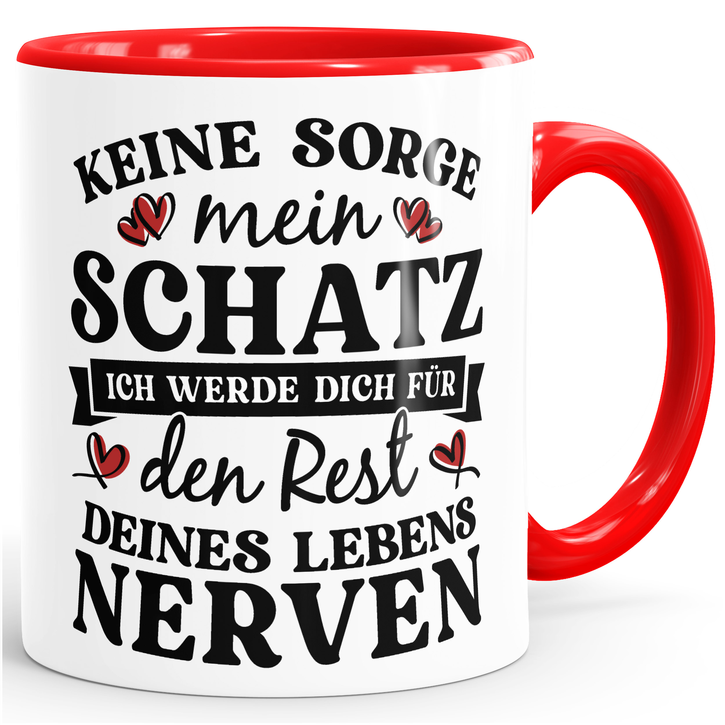- Ob Liebeserklärung oder doch eher Drohung - Man(n) ...oder Frau weiß es nicht genau. ;-) Auf jeden Fall sorgt das Motiv "Keine Sorge Schatz, ich werde dich für den Rest deines Lebens nerven" für Lacher und passt perfekt zu Paaren, die auf eher unkonventionelle Liebesbotschaften stehen