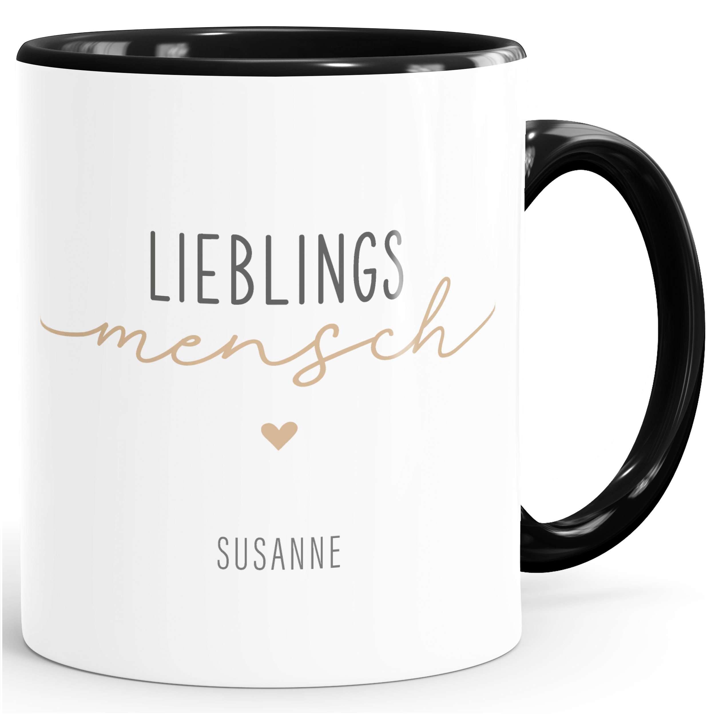 - Wunderschöne Keramiktasse mit elegantem Schriftzug "Lieblingsmensch". Das minimalistische Design kannst du unter "jetzt anpassen" mit einem Wunschnamen personalisieren