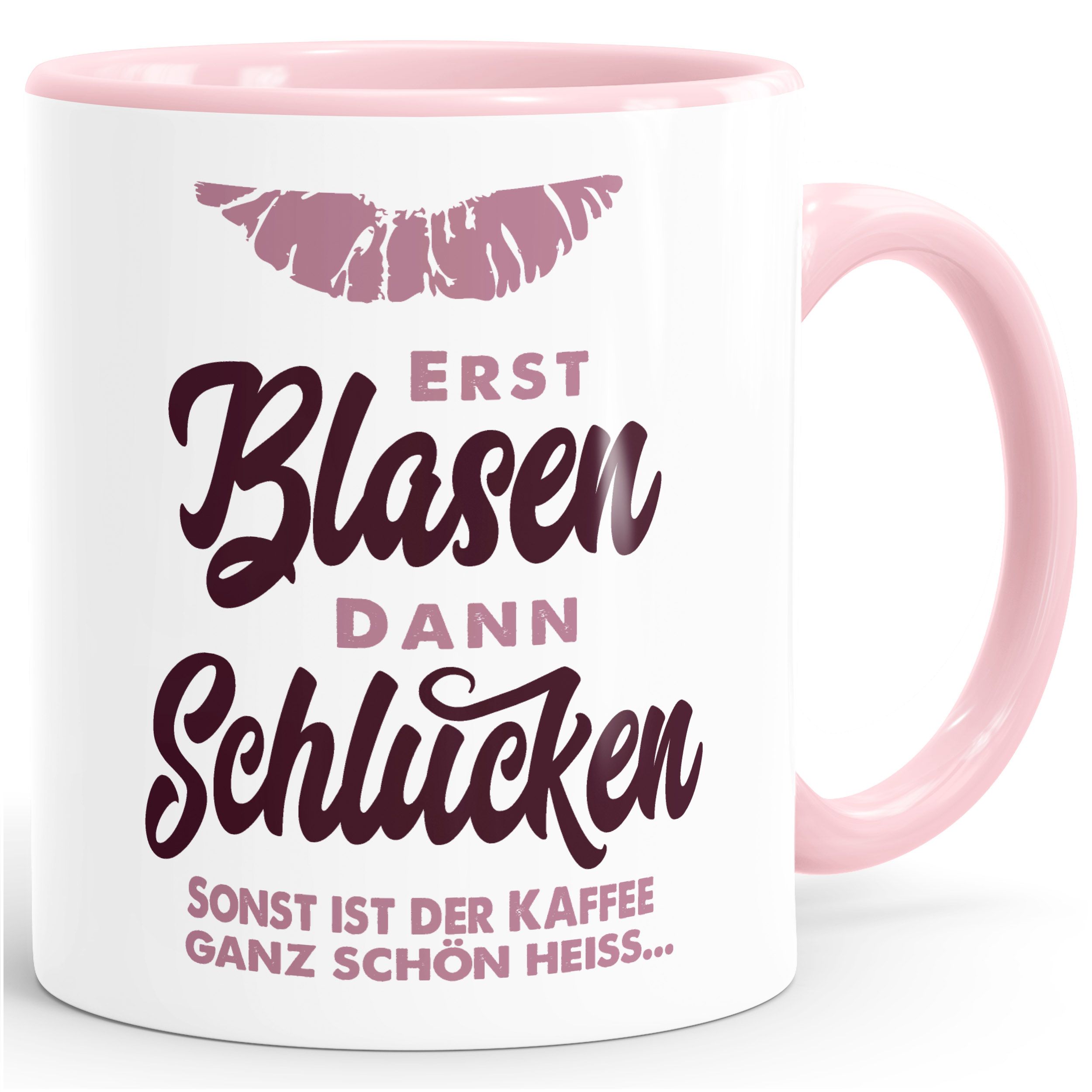 - Motiv (beidseitig bedruckt): Erst blasen dann schlucken, Sonst ist der Kaffee ganz schön heiß, Lippenabdruck, sexy, Spruch