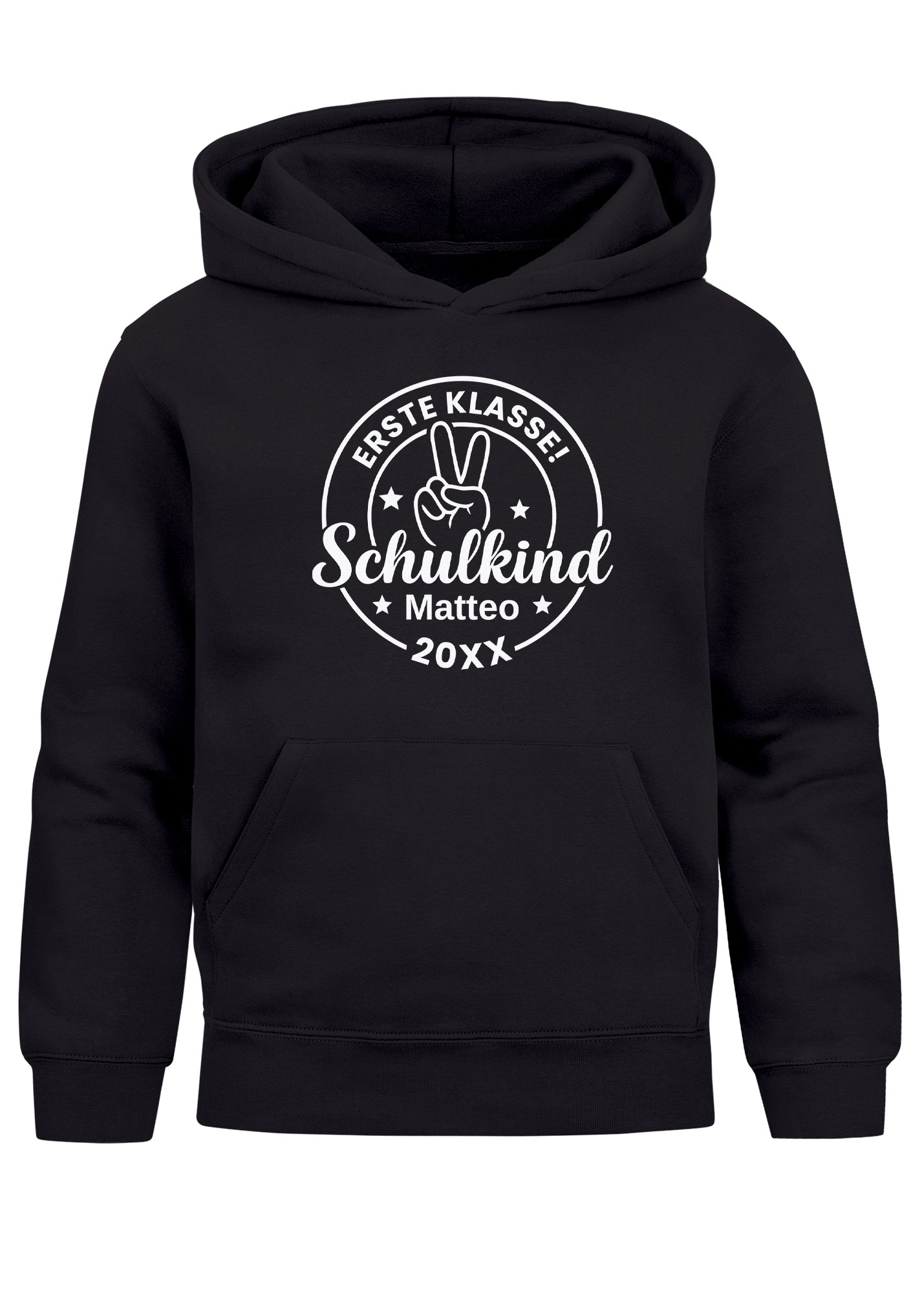 - Vom Kindergarten direkt in die „erste Liga“ – die 1. Klasse! Mit diesem Hoodie und dem lässigen Peace- bzw Schultüten-Motiv wird der Schulstart nicht nur spannend, sondern auch richtig fotogen. Unter "Jetzt anpassen" mit Wunschjahr und Name personalisierbar