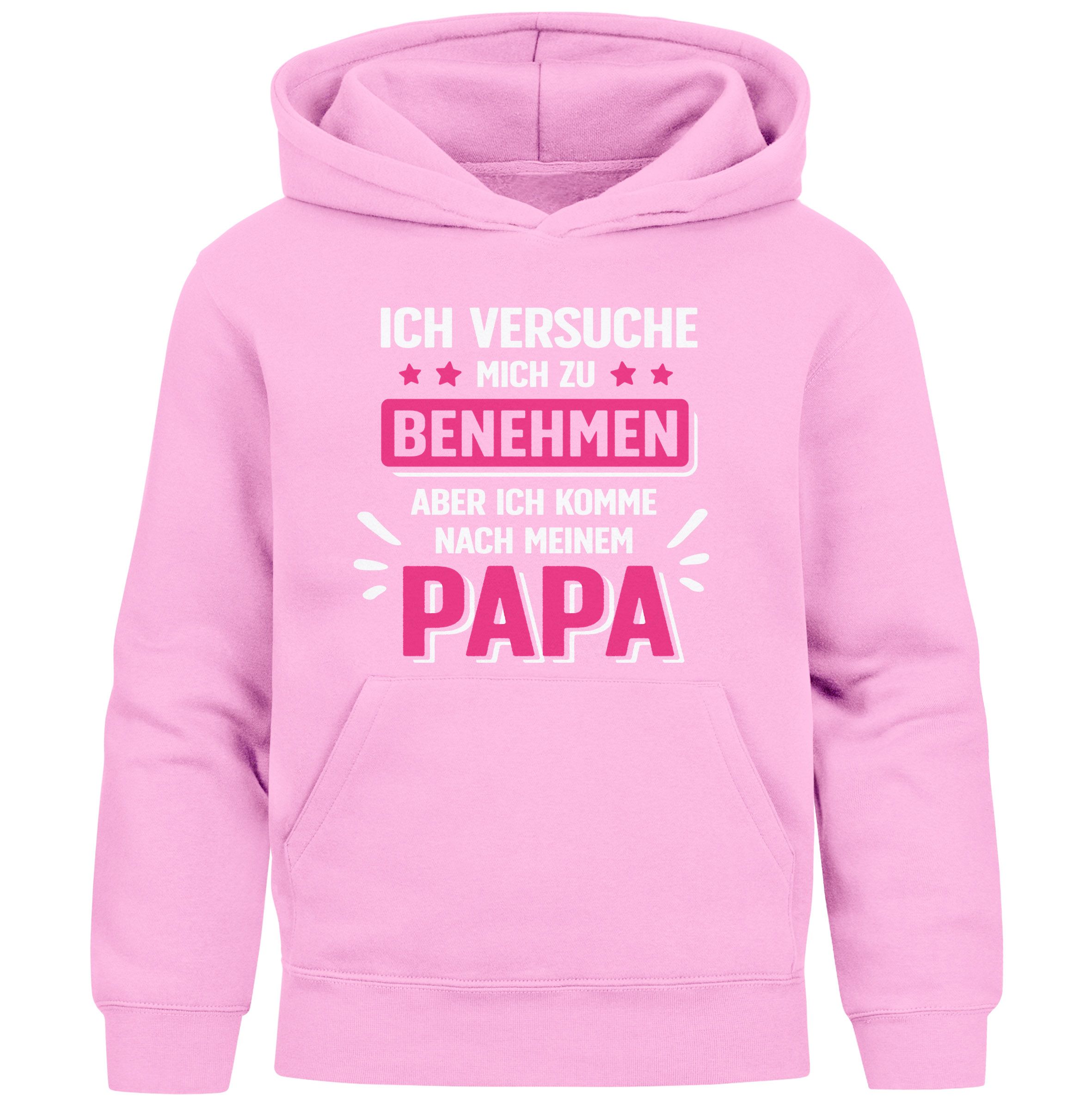 - Freche Mädels werden dieses Sweatshirt mit Kapuze lieben. Der Hoodie für Kinder mit dem witzigen Spruch „Ich versuche mich zu benehmen, aber ich komme nach meinem Papa“ sorgt garantiert für Lacher und gute Laune