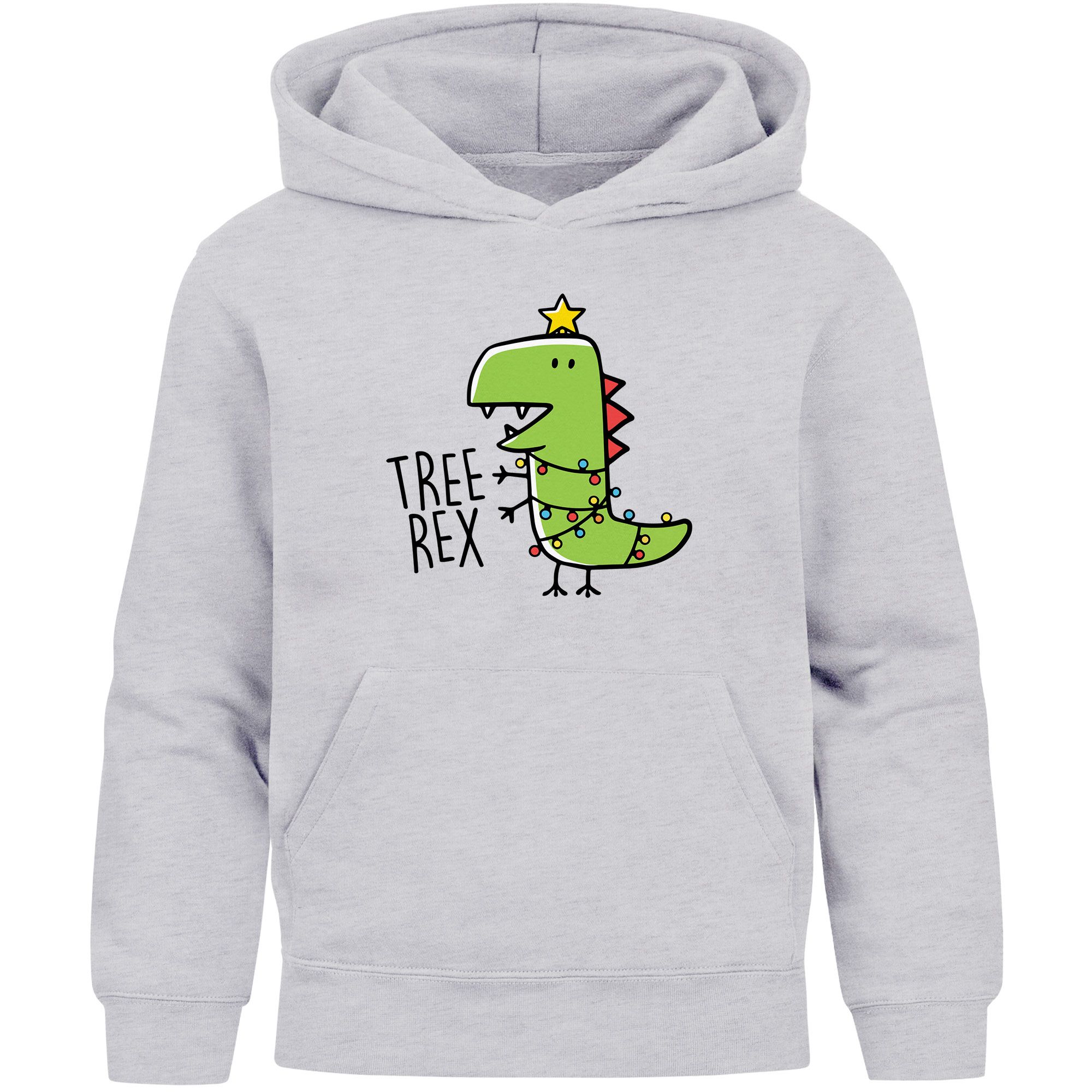 Kinder Hoodie Tree Rex Weihnachtspullover Dino Saurier DesignWeihnachtspullover Jungen Mädchen Weihnachtsoutfit Moonworks®