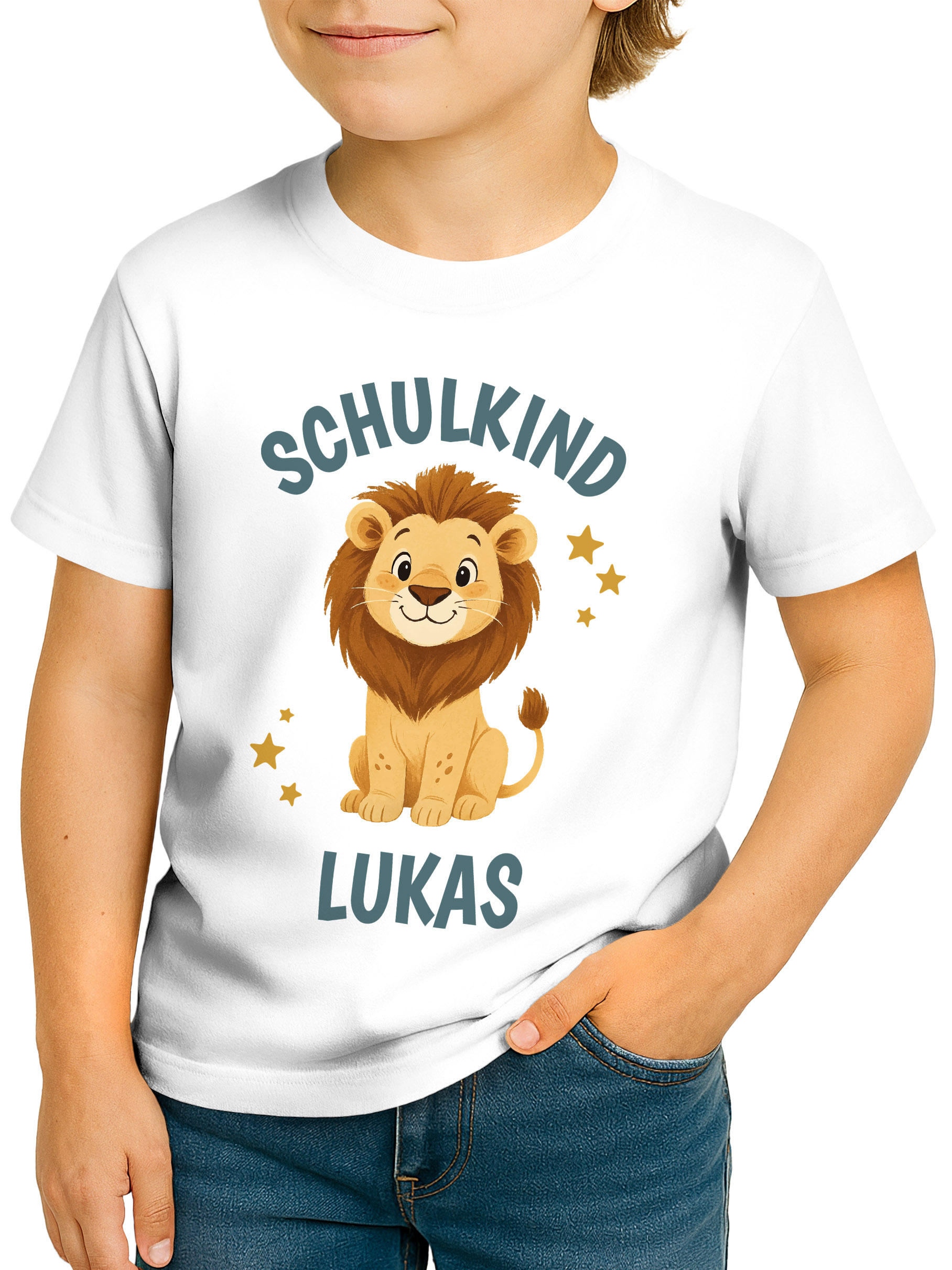 Kinder Jungen T-Shirt Aufschrift Schulkind mit Name personalisiert Motivshirt Löwe Fuchs Geschenkidee Einschulung 2026 SpecialMe®