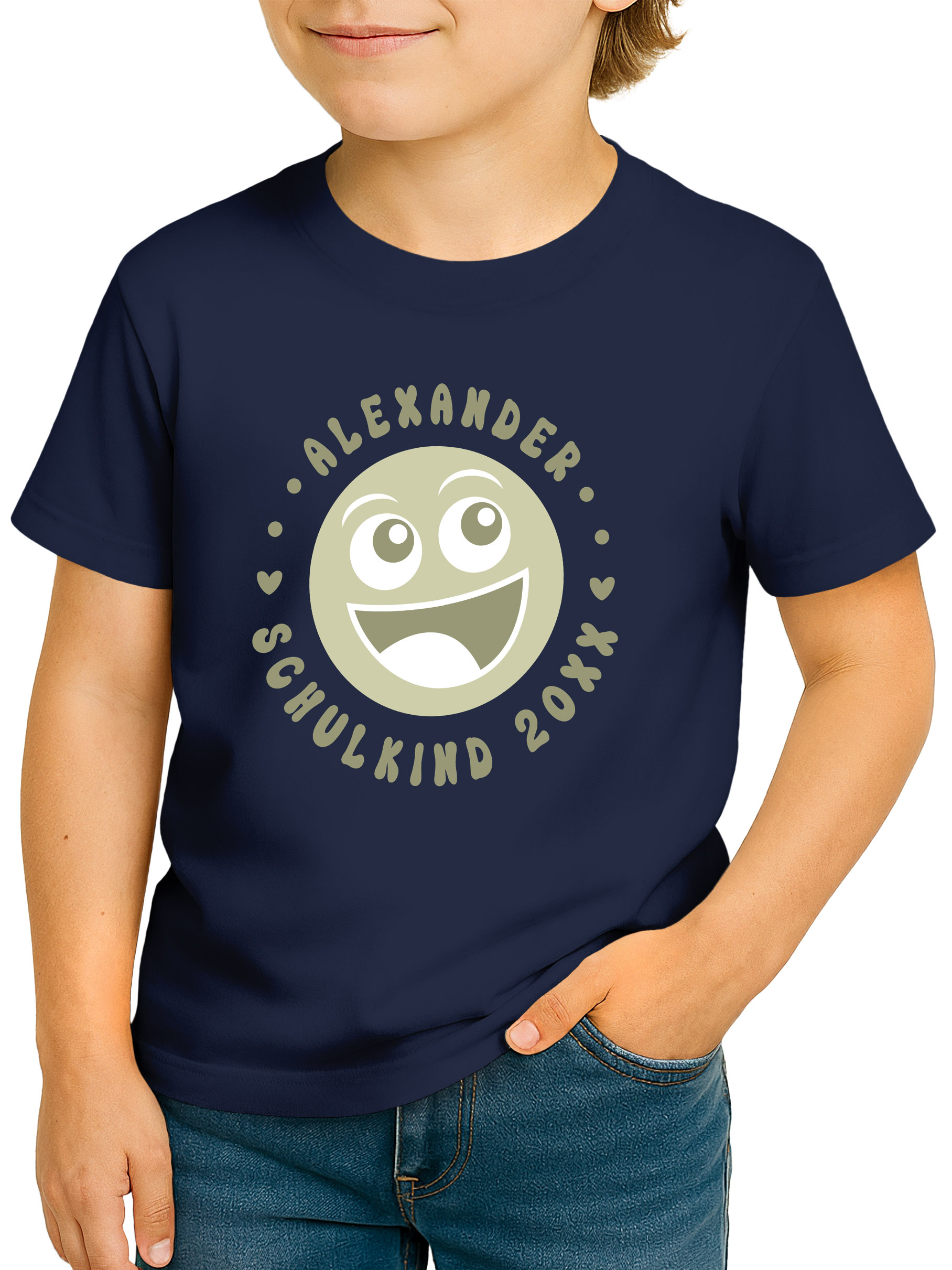 Kinder Jungen T-Shirt Einschulung 2026 mit Name Jahreszahl Smile Gesicht Icon personalisiert Schulkind Geschenkidee Erstklässler SpecialMe®