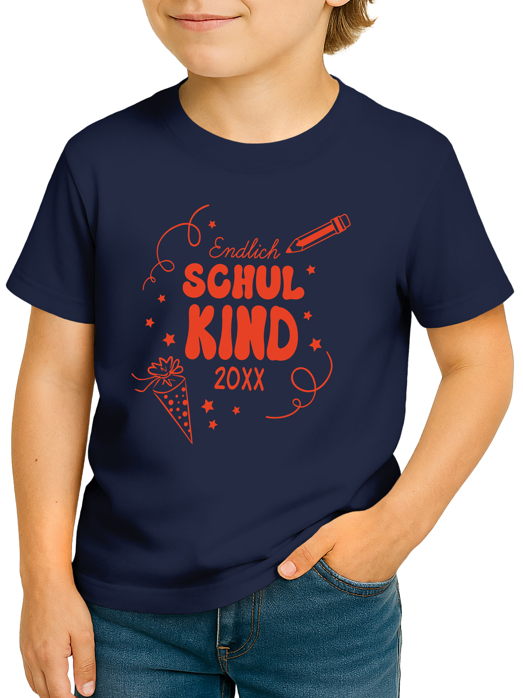 • Cooles Statement-Shirt für kleine Schulanfänger. Dieses minimalistische Schulkind T-Shirt für Jungen mit Konfetti, Schultüte und dem Aufdruck „Endlich Schulkind“ mit anpassbarer Jahreszahl ist das perfekte Outfit zum Schulstart. Ideal für das Einschulungsfoto oder die erste Schulparty