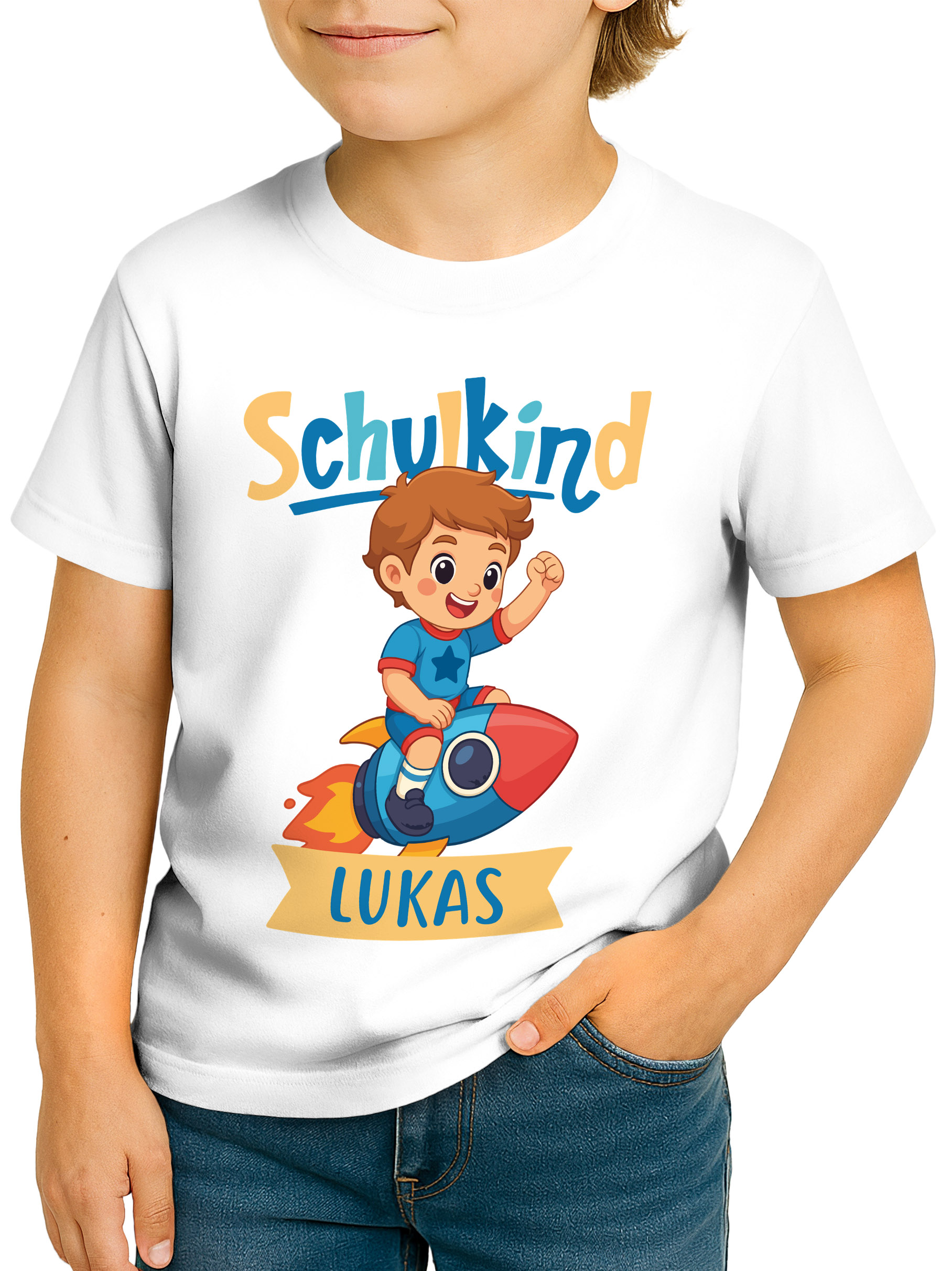• Kreativer Schulstart – mit Wunschmotiv & Namen. Ob Fußballfan, Dino-Freund oder kleiner Weltraumheld – in dieser T-Shirt-Kollektion für Jungen zur Einschulung findet jedes Kind das passende Motiv. Alle Shirts sind mit Namen und dem Schriftzug „Schulkind“ personalisierbar – perfekt für die 1. Klasse!