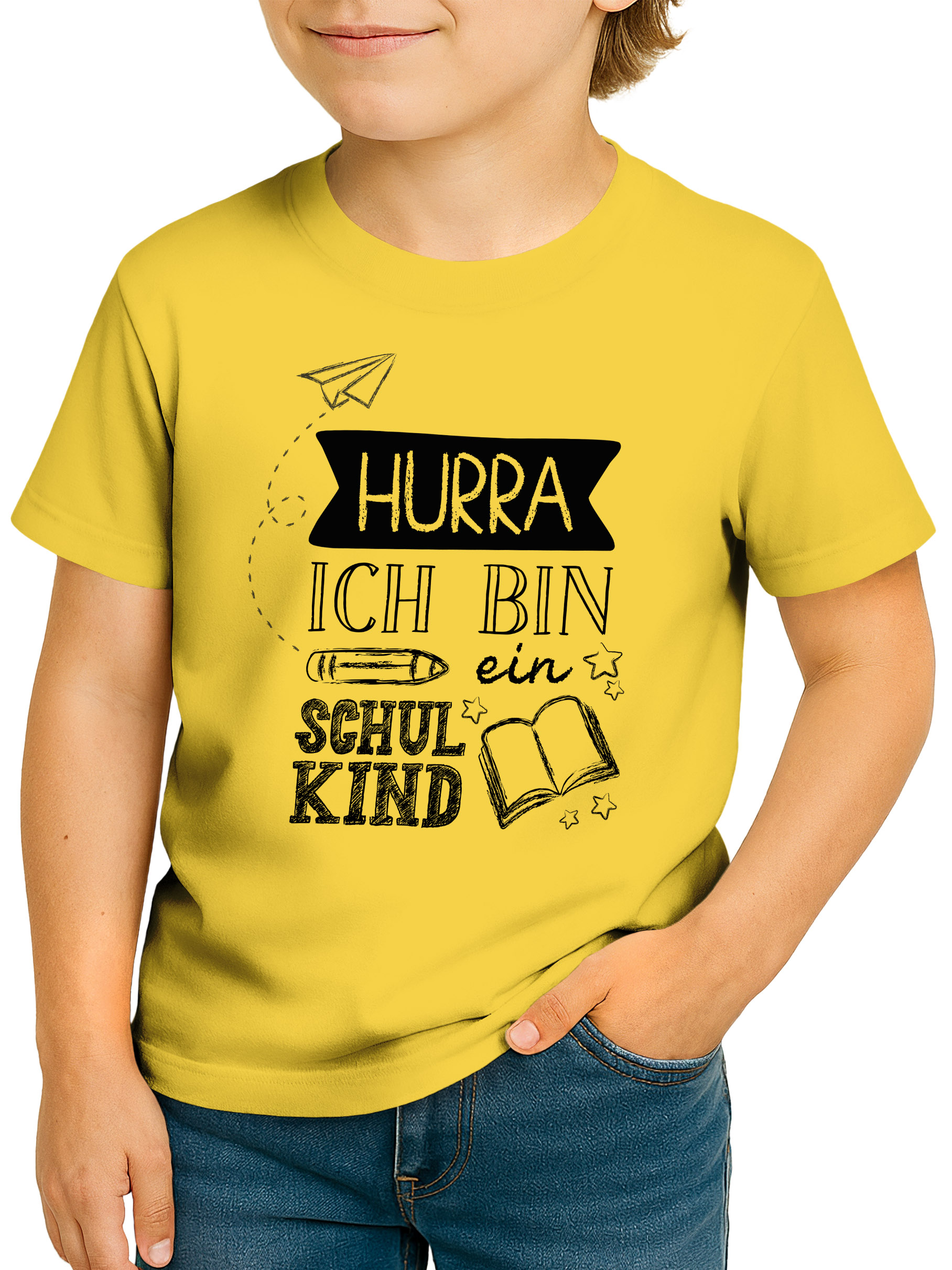 - Hurra, endlich Schulkind – der große Tag ist da! Dieses schlichte T-Shirt zum Schulanfang begeistert mit coolem Look, verspielter Typografie und Schulmotiven wie Papierflieger und Buch. Das perfekte Outfit für den Start in die 1. Klasse