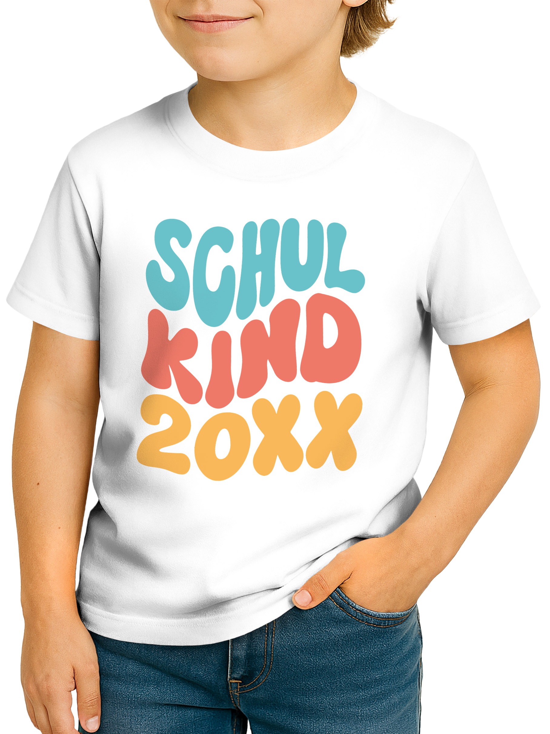 Kinder Jungen T-Shirt Einschulung Retro-Schriftzug Schulkind mit Jahreszahl personalisierbar Geschenkidee Schulanfang SpecialMe®
