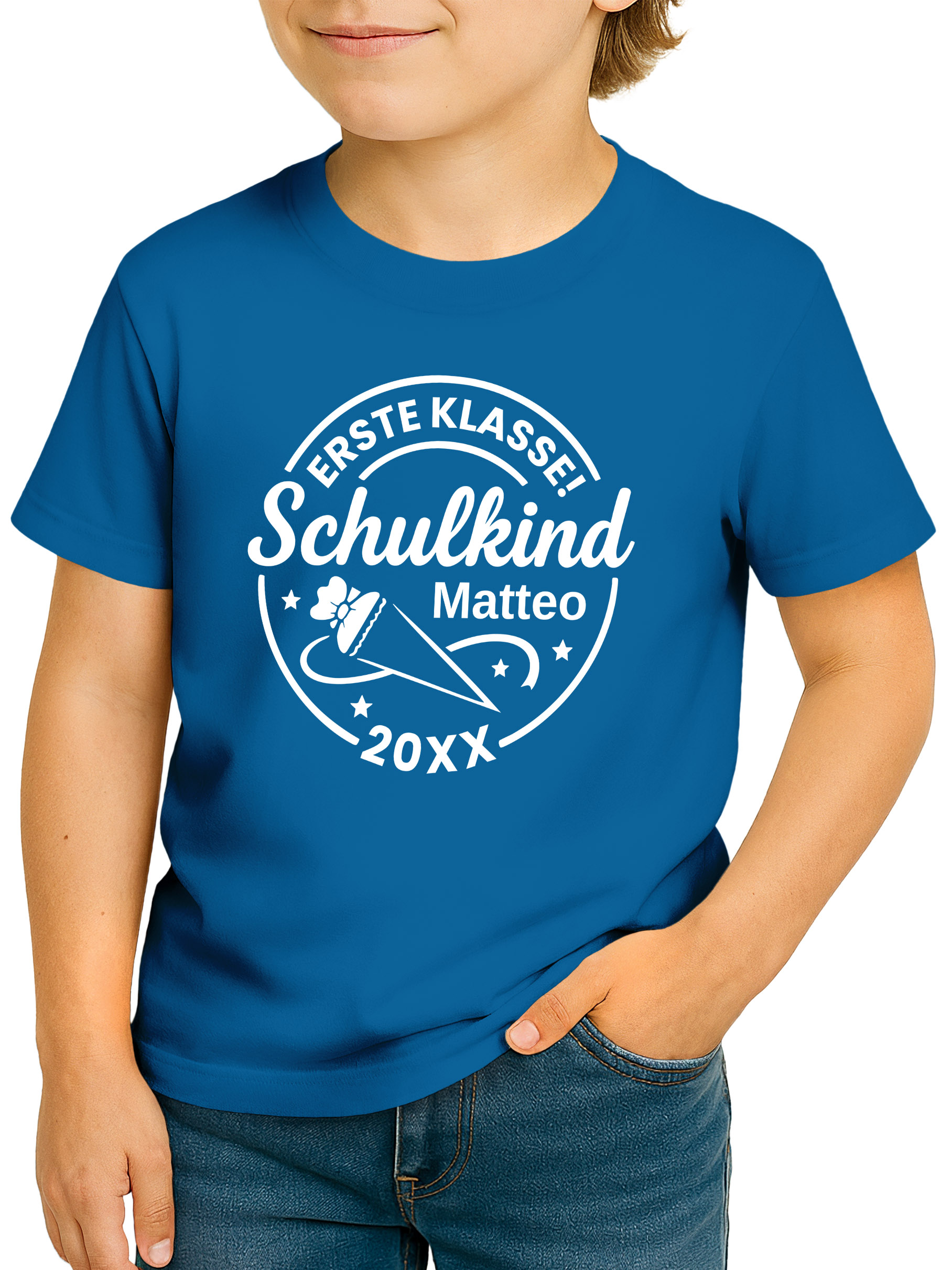 • Stilvoll & stolz in die 1. Klasse starten. Dieses klassische Einschulungs-T-Shirt für Jungen mit Namensaufdruck, Jahreszahl und Schultüten-Emblem ist ein echter Hingucker am ersten Schultag. Ideal für die Einschulungsfeier, das Klassenfoto oder als Geschenk zur Schultüte