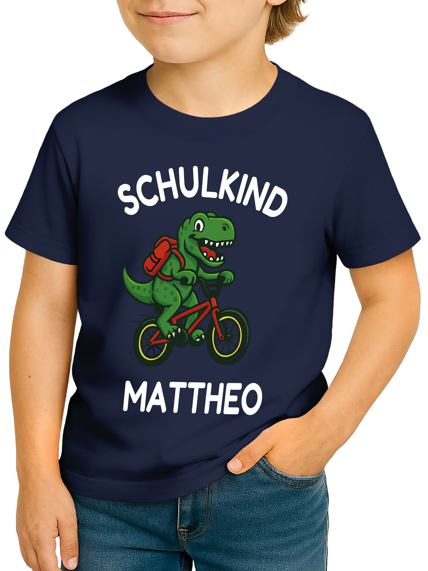• Dino on Tour – mit Schwung in die 1. Klasse. Mit dem sportlichen Dino-Motiv, Namensaufdruck und Schulkind-Schriftzug ist dieses Einschulungs-T-Shirt ideal für kleine Radler. Ein cooles Outfit für den ersten Schultag und ein unvergessliches Andenken