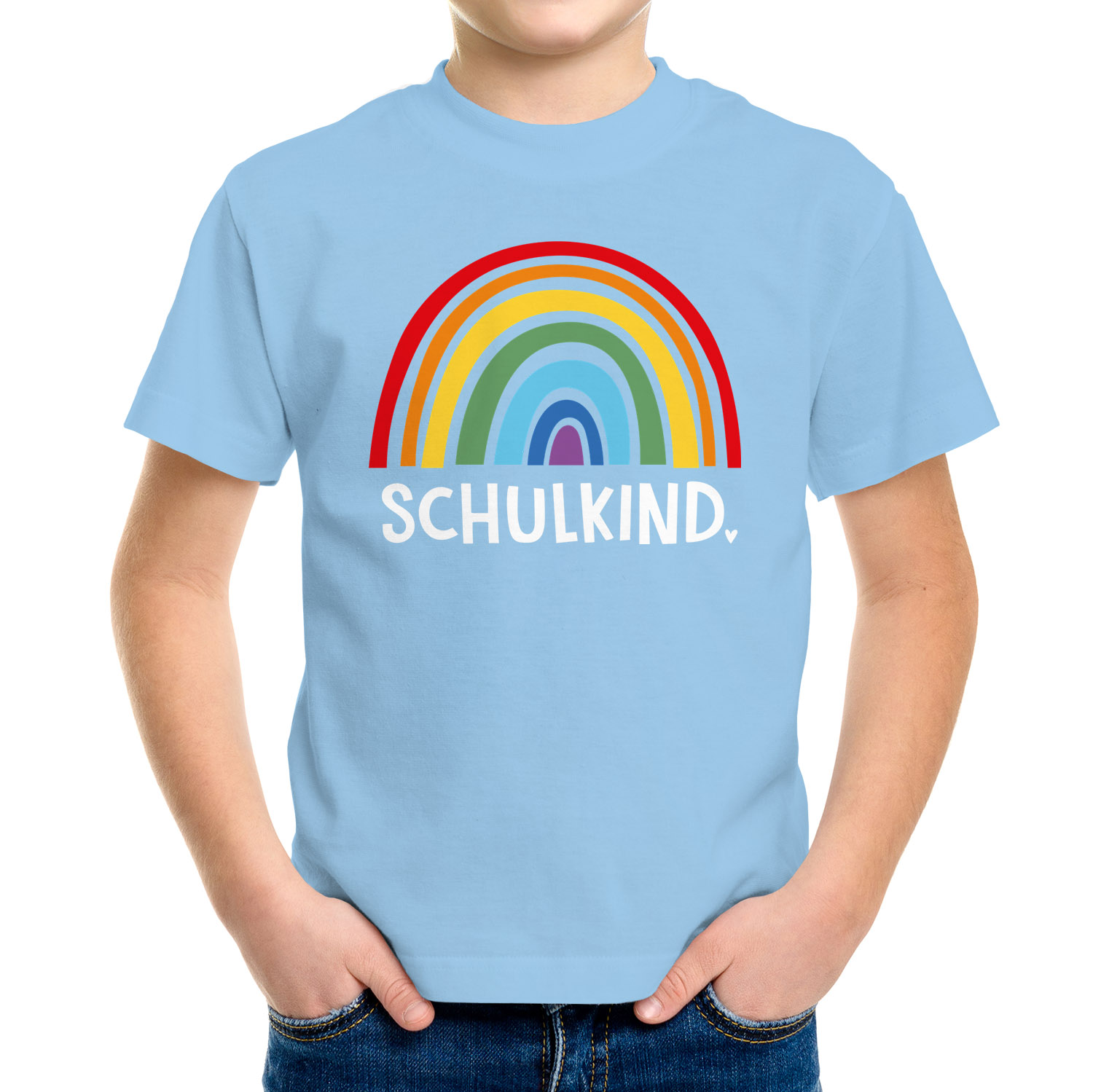 - Wunderschönes Kinder T-Shirt als Geschenk zur Einschulung oder als Outfit für den ersten Schultag. Mit kunterbuntem Regenbogen und Schriftzug Schulkind