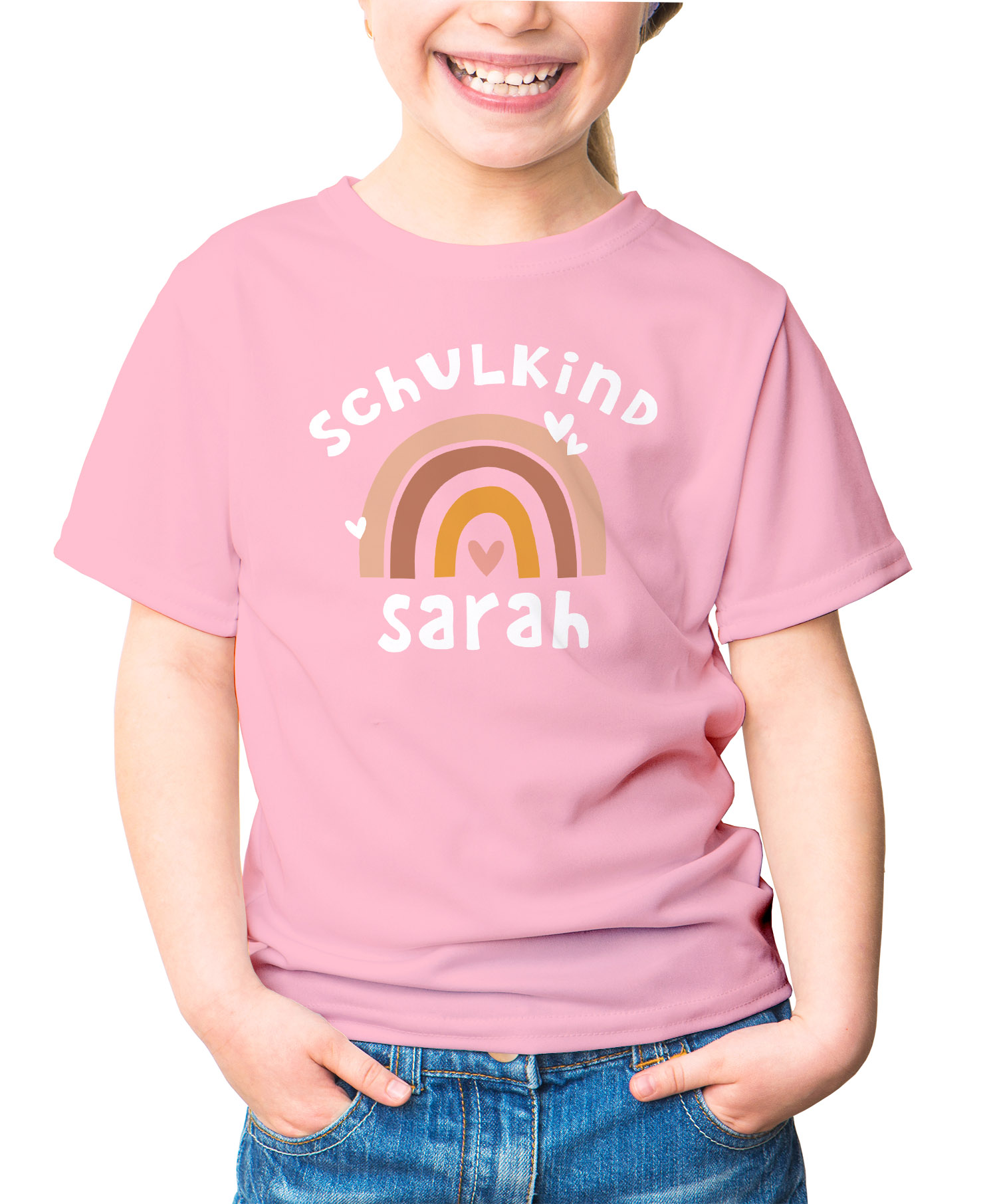 • Motiv: Regenbogen, Herzen, Aufdruck "Schulkind" - anpassbar mit Wunschnamen
