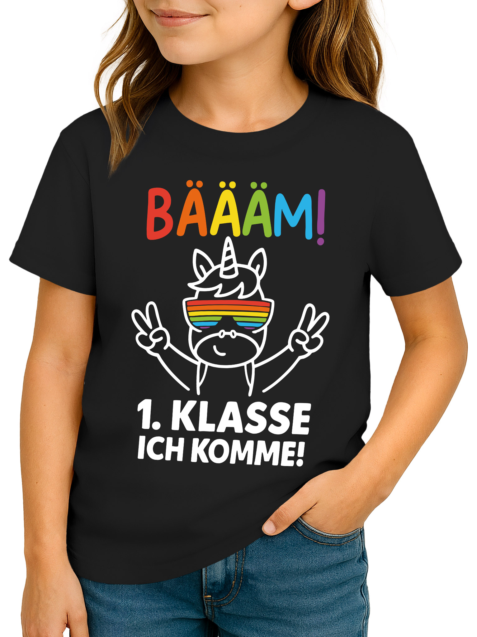 • BÄÄÄM! Jetzt geht’s los – Schulstart mit Einhorn-Power. Mit knalligen Farben, coolen Spruch und trendigem Einhorn sorgt dieses Einschulungs-T-Shirt für gute Laune zum Schulanfang. Das ideale Outfit für stolze ABC-Schützinnen, die ihren neuen Lebensabschnitt feiern möchten