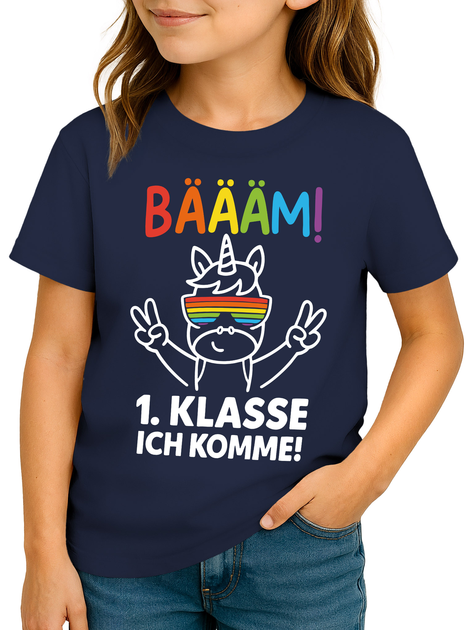 • BÄÄÄM! Jetzt geht’s los – Schulstart mit Einhorn-Power. Mit knalligen Farben, coolen Spruch und trendigem Einhorn sorgt dieses Einschulungs-T-Shirt für gute Laune zum Schulanfang. Das ideale Outfit für stolze ABC-Schützinnen, die ihren neuen Lebensabschnitt feiern möchten