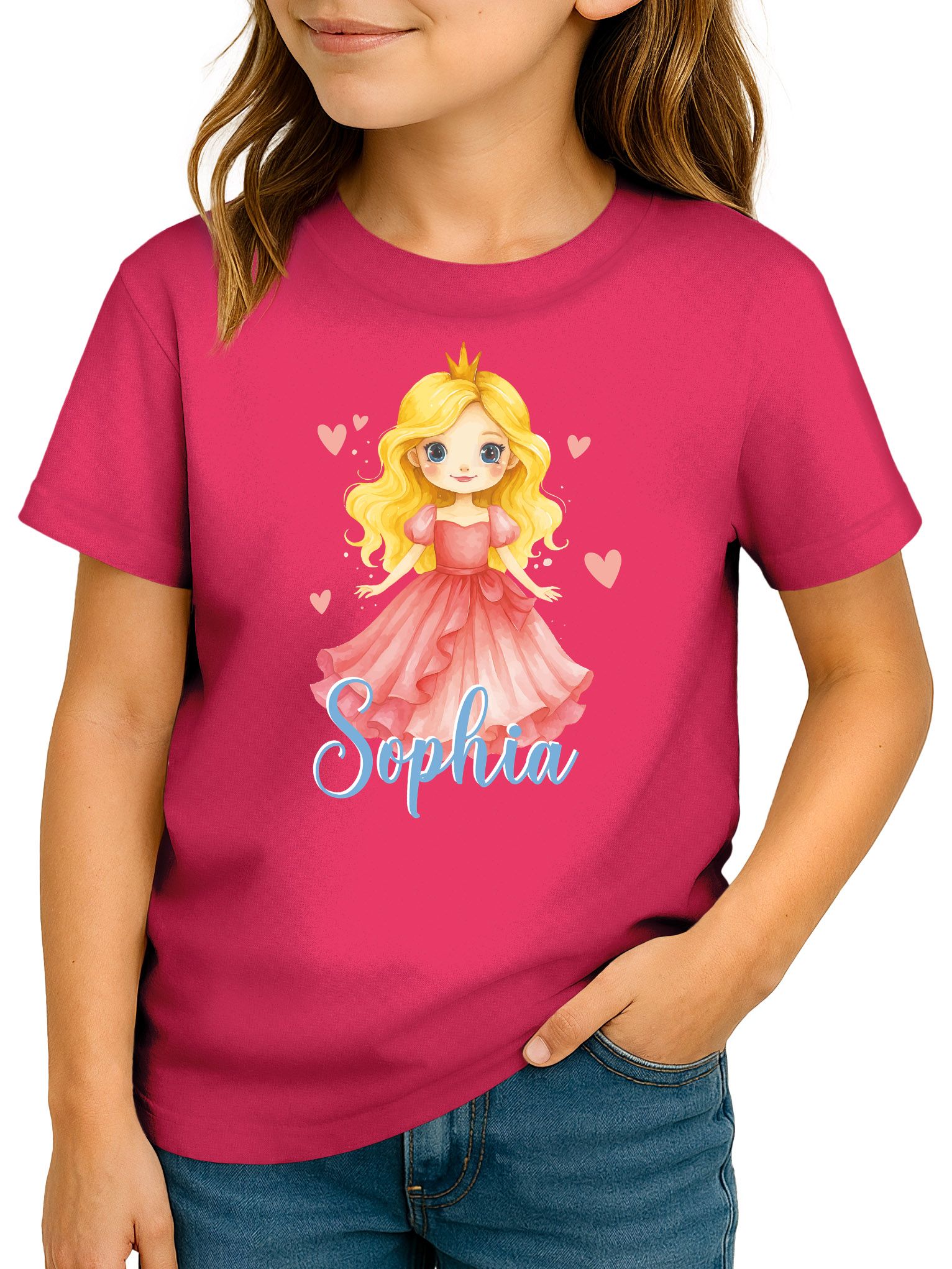 - Märchenhaftes Shirt für kleine Prinzessinnen – mit Krone, rosa Kleid und viel Liebe zum Detail.– das Kinder T-Shirt für Mädchen wird individuell mit Namen und Motiv bedruckt und so zum echten Unikat. Ein Lieblingsshirt mit Erinnerungswert