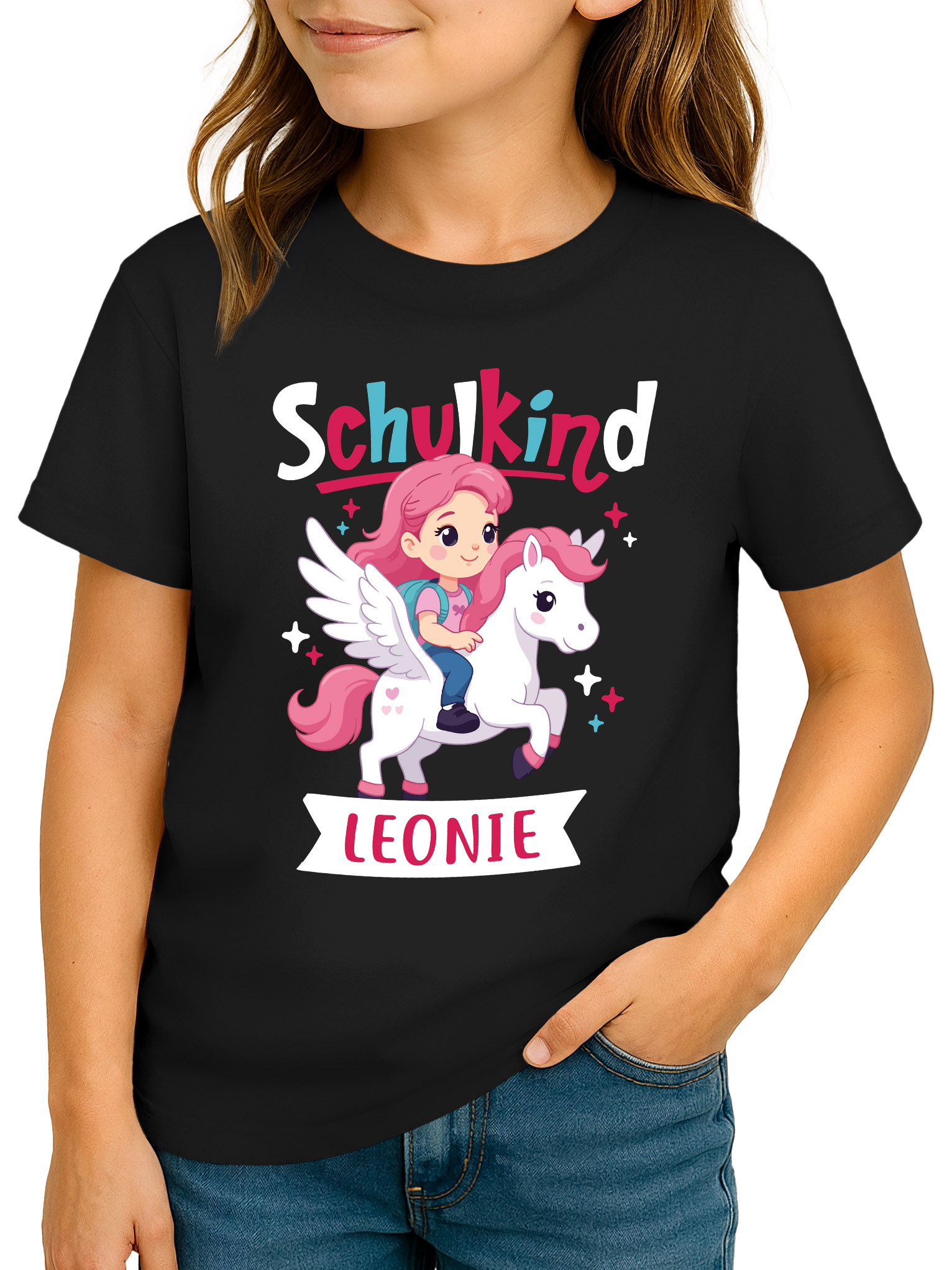 • Mit diesem personalisierbaren Schulkind T-Shirt für Mädchen wird der erste Schultag zu einem echten Märchenmoment. Ideal für kleine Heldinnen, die Pegasus, Einhorn und geflügeltePferde lieben – als Geschenk zum Schulanfang oder für die Einschulungsfeier