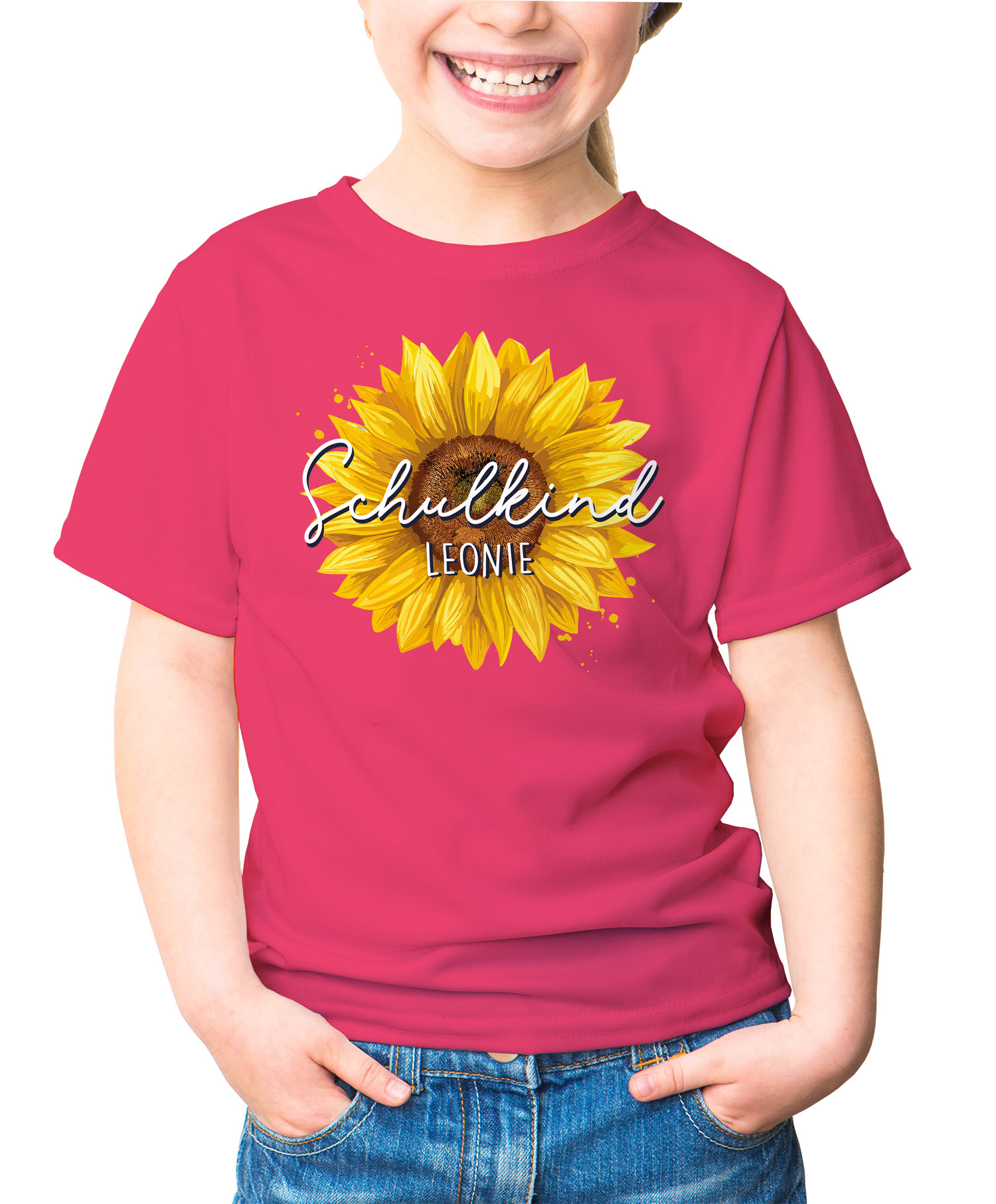 • Motiv: Schriftzug "Schulkind"- anpassbar mit Namen, Sonnenblume