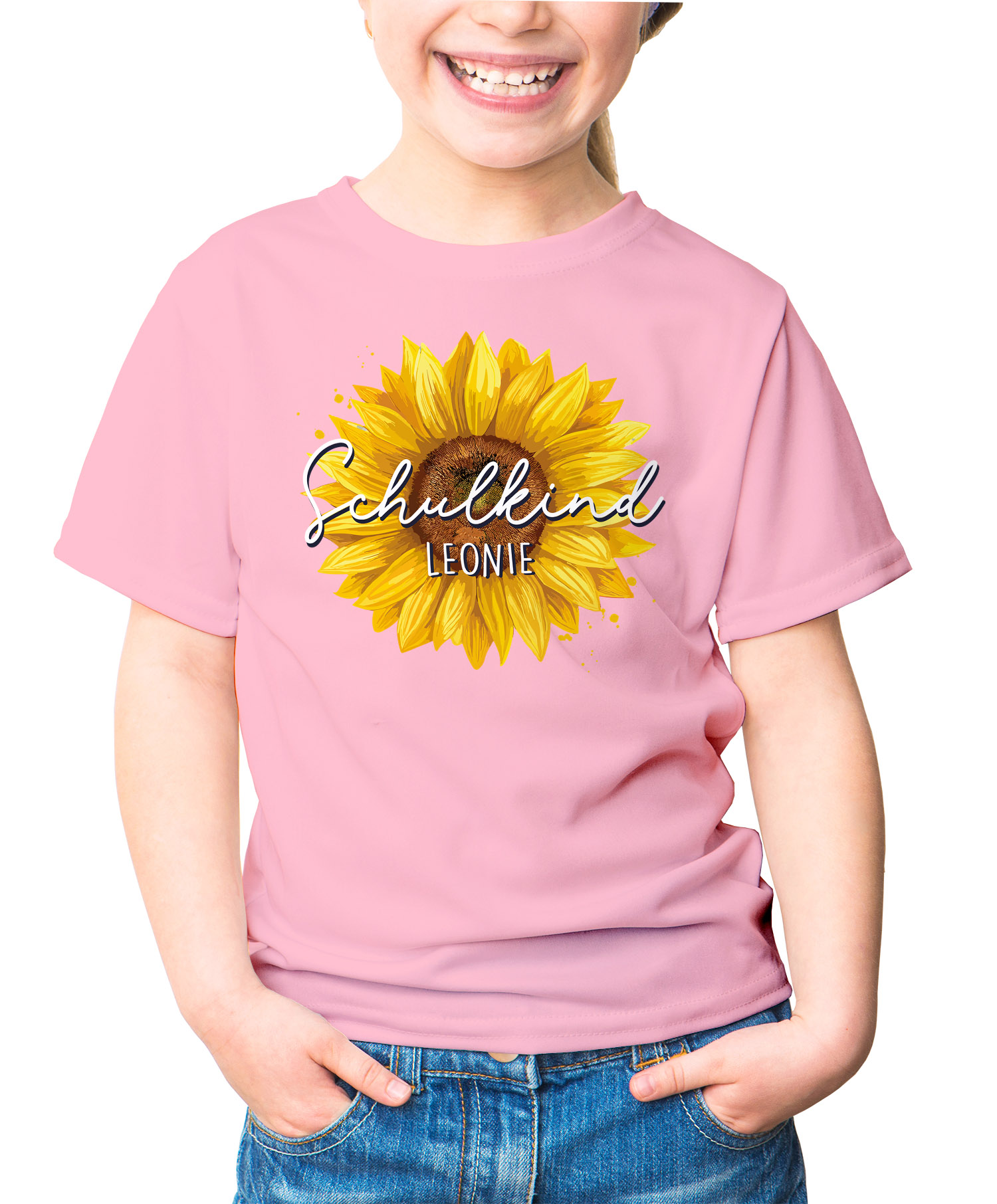 Kinder Mädchen T-Shirt Schulanfang 2026 Sonnenblume Schulkind Wunschname Geschenkidee 1. Schultag SpecialMe®