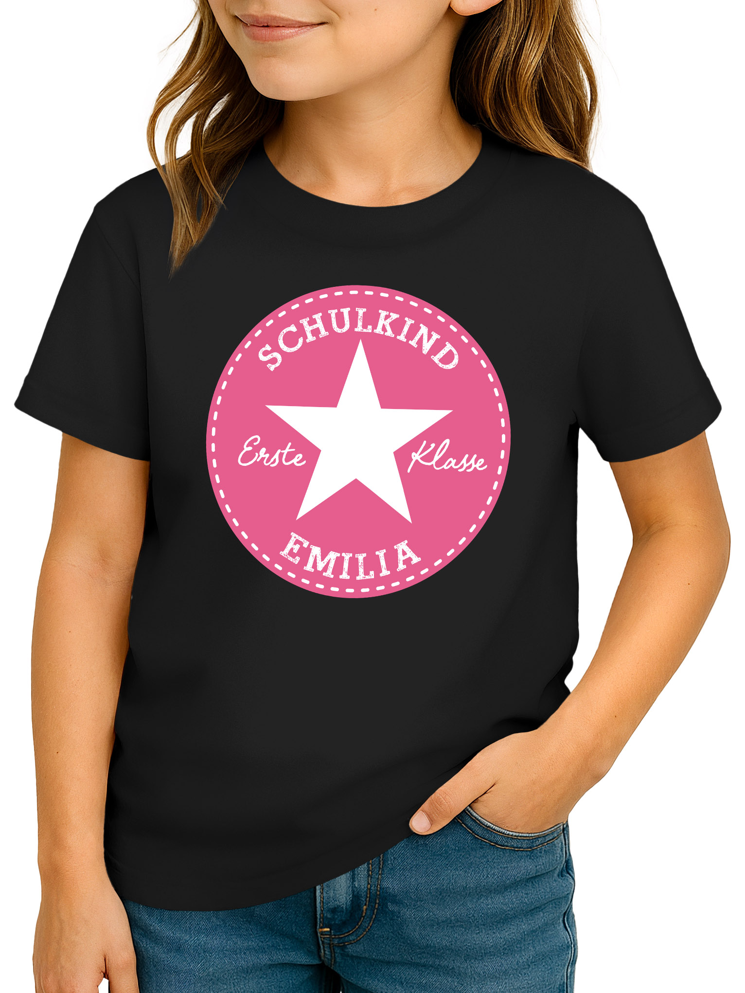 - Ein echter Star am 1. Schultag – personalisiertes Einschulungs-Shirt. Mit dem auffälligen Stern-Motiv, dem Namen des Schulkindes und der Aufschrift „Erste Klasse“ wird dieses T-Shirt zur Einschulung 2026 zum echten Lieblingsstück. Perfekt als Geschenkidee für stolze Erstklässlerinnen