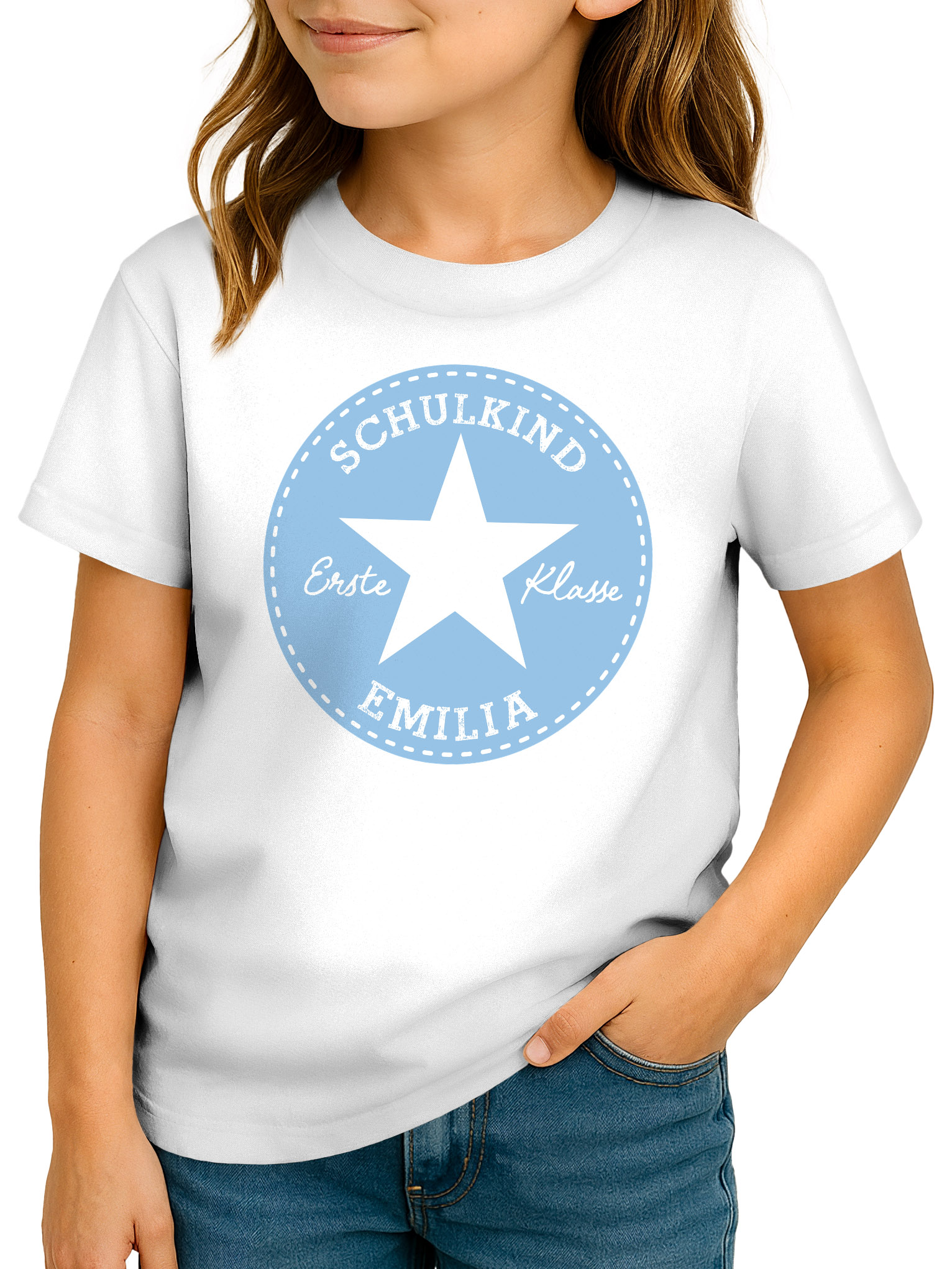 - Ein echter Star am 1. Schultag – personalisiertes Einschulungs-Shirt. Mit dem auffälligen Stern-Motiv, dem Namen des Schulkindes und der Aufschrift „Erste Klasse“ wird dieses T-Shirt zur Einschulung 2026 zum echten Lieblingsstück. Perfekt als Geschenkidee für stolze Erstklässlerinnen