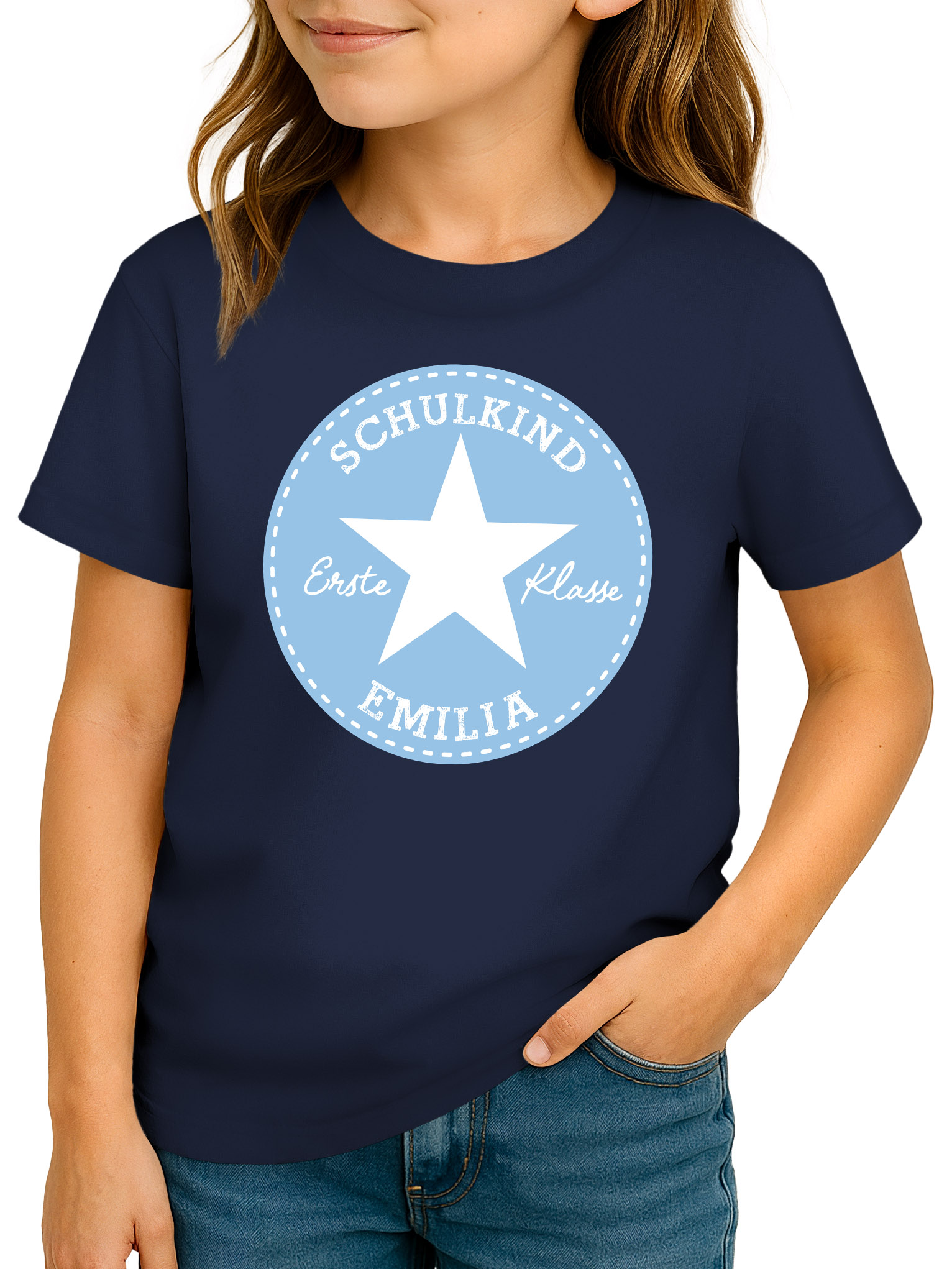- Ein echter Star am 1. Schultag – personalisiertes Einschulungs-Shirt. Mit dem auffälligen Stern-Motiv, dem Namen des Schulkindes und der Aufschrift „Erste Klasse“ wird dieses T-Shirt zur Einschulung 2026 zum echten Lieblingsstück. Perfekt als Geschenkidee für stolze Erstklässlerinnen