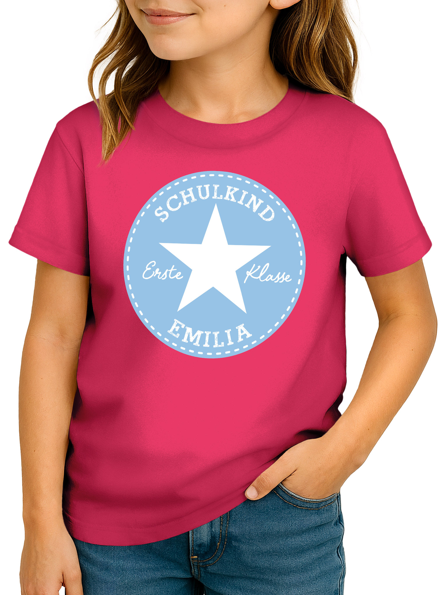 - Ein echter Star am 1. Schultag – personalisiertes Einschulungs-Shirt. Mit dem auffälligen Stern-Motiv, dem Namen des Schulkindes und der Aufschrift „Erste Klasse“ wird dieses T-Shirt zur Einschulung 2026 zum echten Lieblingsstück. Perfekt als Geschenkidee für stolze Erstklässlerinnen