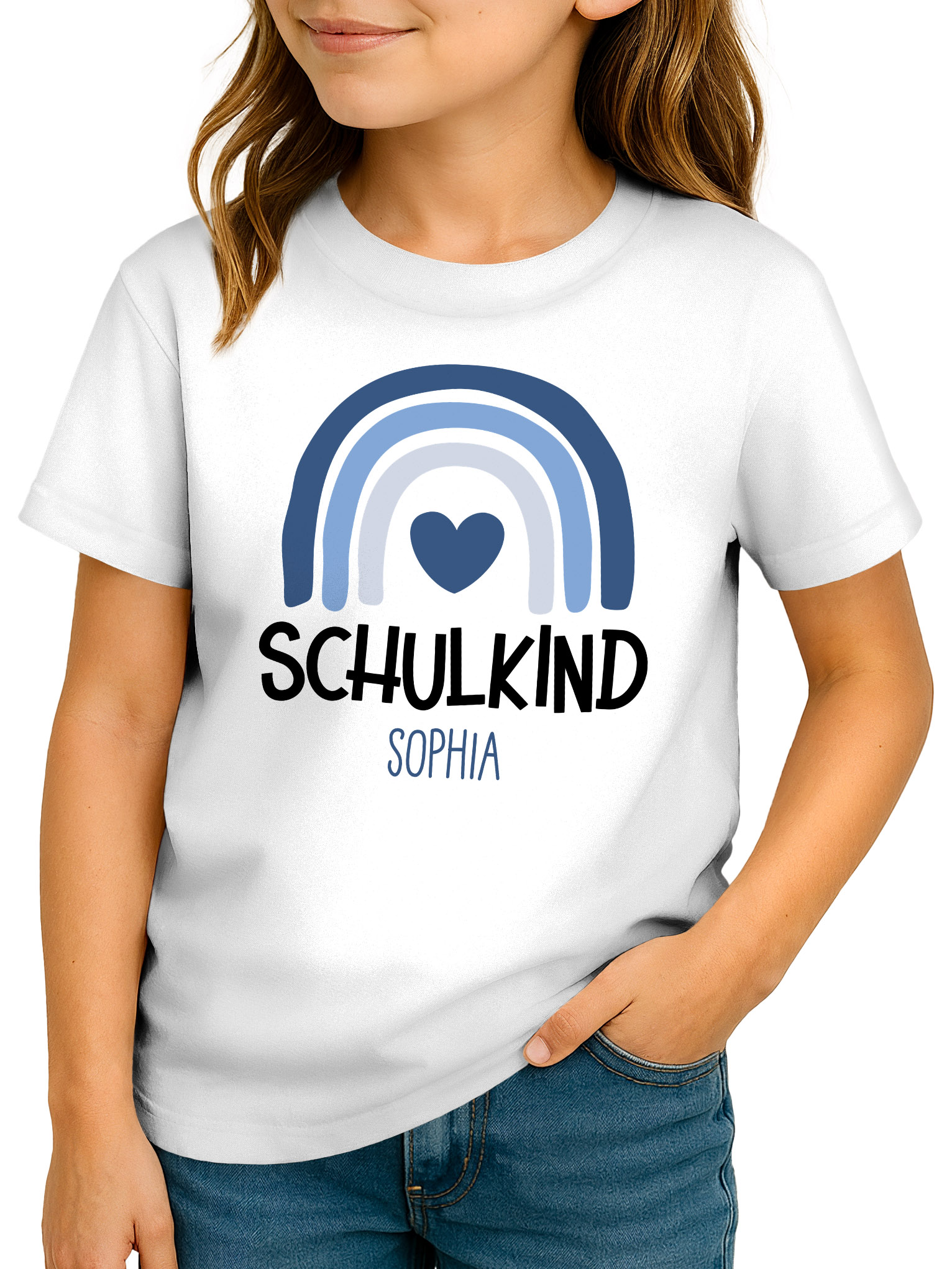 Kinder Mädchen T-Shirt Schulkind mit Name personalisiert Regenbogen-Design Geschenkidee Einschulung 2026 SpecialMe®