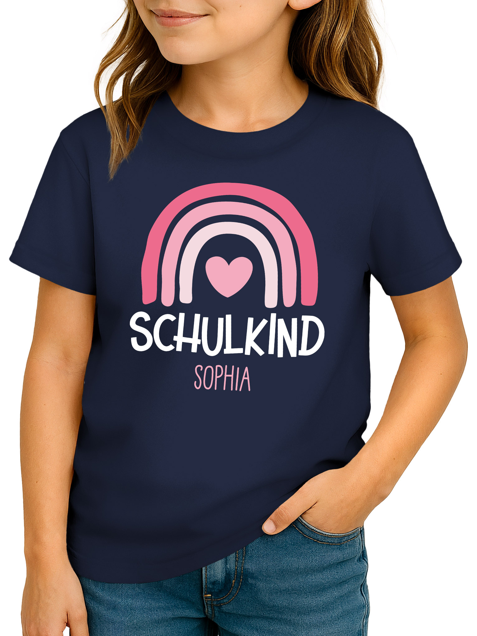 Kinder Mädchen T-Shirt Schulkind mit Name personalisiert Regenbogen-Design Geschenkidee Einschulung 2026 SpecialMe®