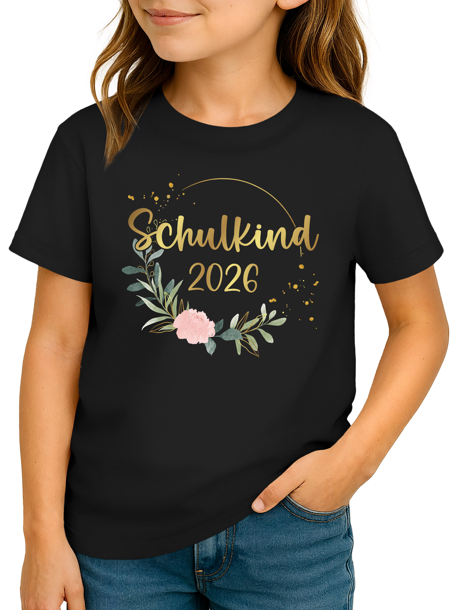 Kinder Mädchen T-Shirt Schulkind personalisiert Jahreszahl Blumen Blüten Goldfarben Geschenk Einschulung 2026 SpecialMe®