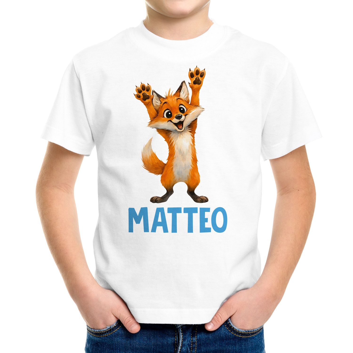 Kinder T-Shirt Fuchs mit Name – Personalisiertes Shirt für Jungen – Tiermotiv bedruckt – Geschenk zur Einschulung oder Geburtstag Moonworks®