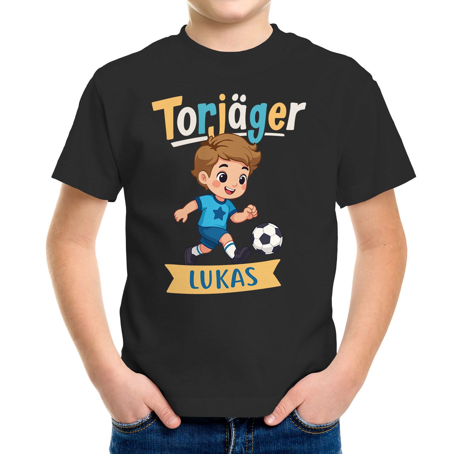 Kinder T-Shirt Fußball personalisiert – Torjäger Motiv mit Name – Geschenk für Jungen – Shirt für Geburtstag oder Einschulung Moonworks®