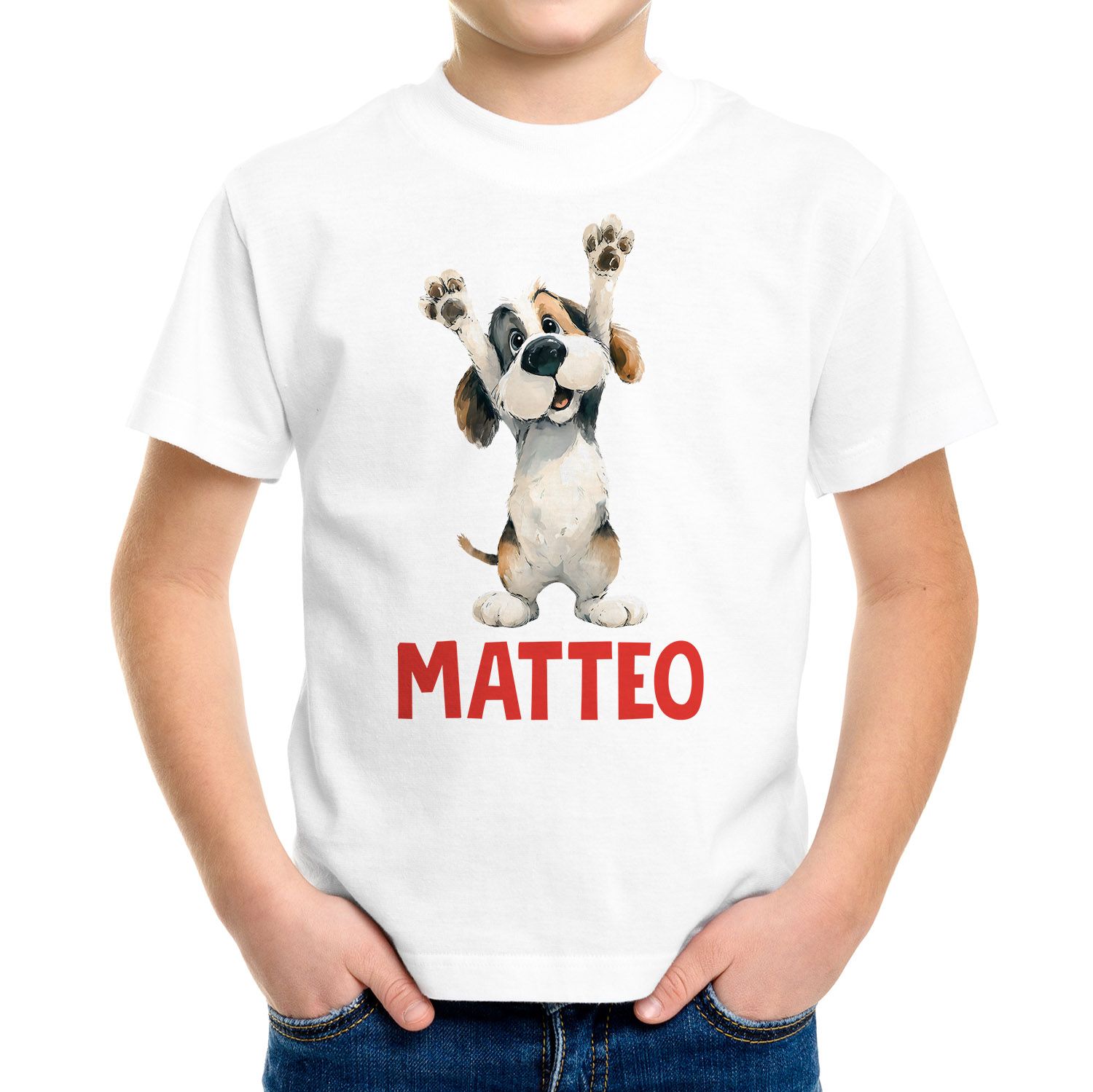 Kinder T-Shirt Hund mit Name – personalisiertes Shirt für Jungen – Lustiges Tiermotiv Hund – Geschenkidee Geburtstag oder Einschulung Moonworks®