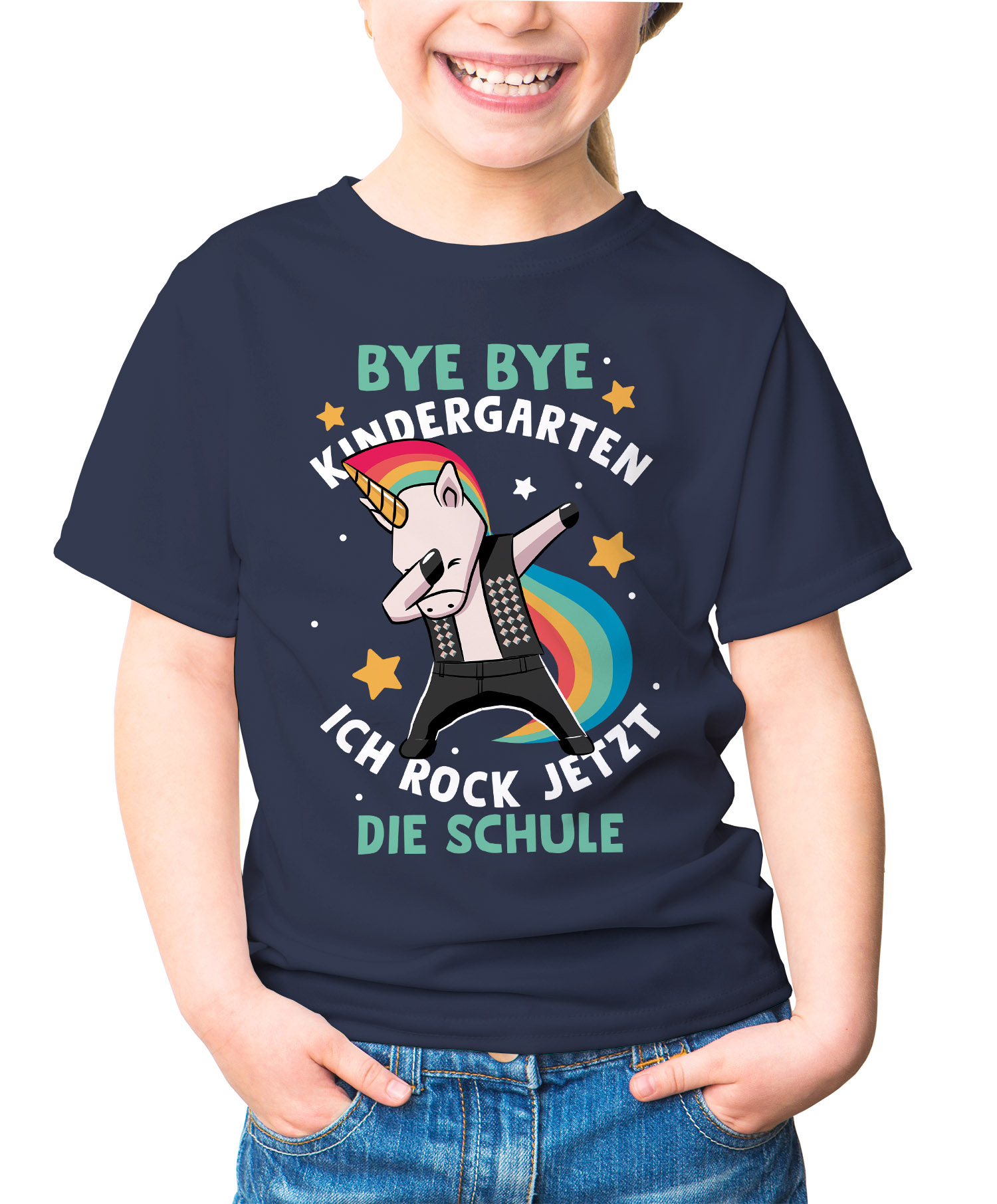 - Bye Bye Kindergarten ich rock jetzt die Schule - Cooles Shirt zur Einschulung mit Einhorn Regenbogen und Spruch Motiv