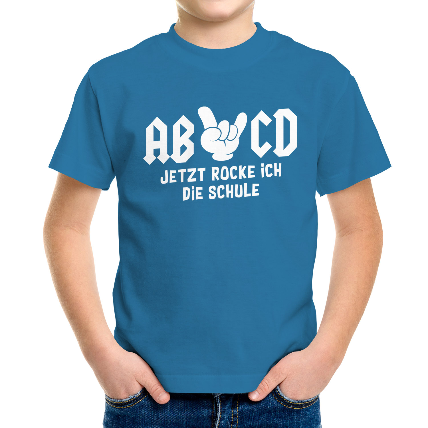 - Cooles Einschulungsoutfit für kleine Rocker. Mit dem witzigen Spruch "Jetzt rocke ich die Schule", Metalhand und Schriftzug AB CD ist ein spektakulärer Auftritt auf der Schulbühne garantiert. Mama aufpassen! Nach Schulschluss stehen kleine Groupies vor der Haustür
