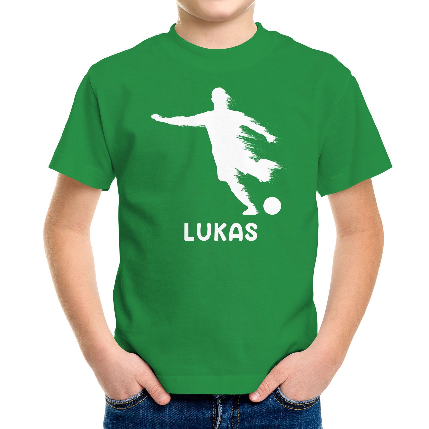 Kinder T-Shirt Jungen personalisiert Wunschname Fußballer Aufdruck Sportshirt Geschenk für Jungen Moonworks®