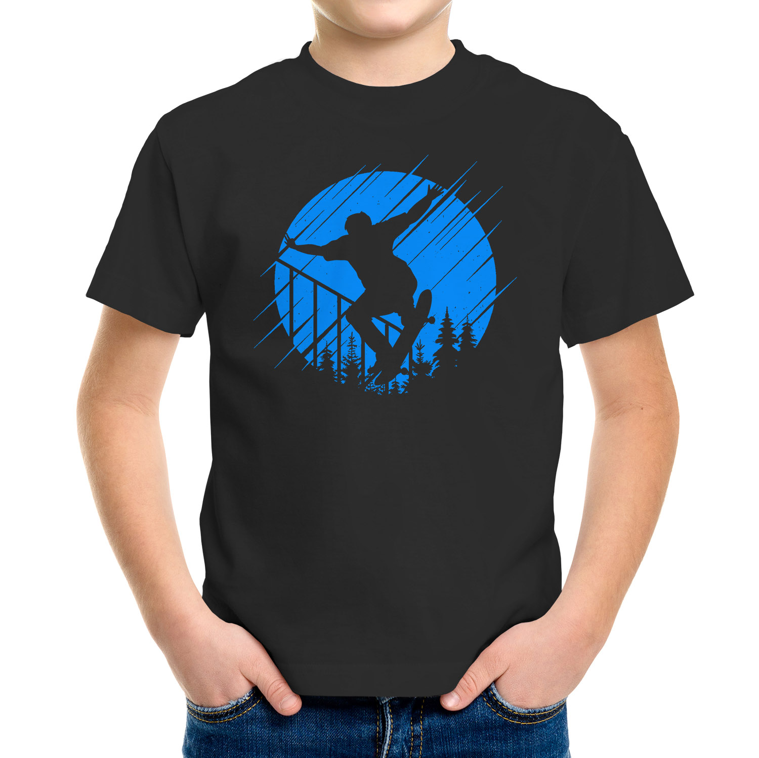 Kinder T-Shirt Jungen Skateboard Motiv Skater Silhouette Geschenk für Jungen Printshirt Streetstyle Moonworks®