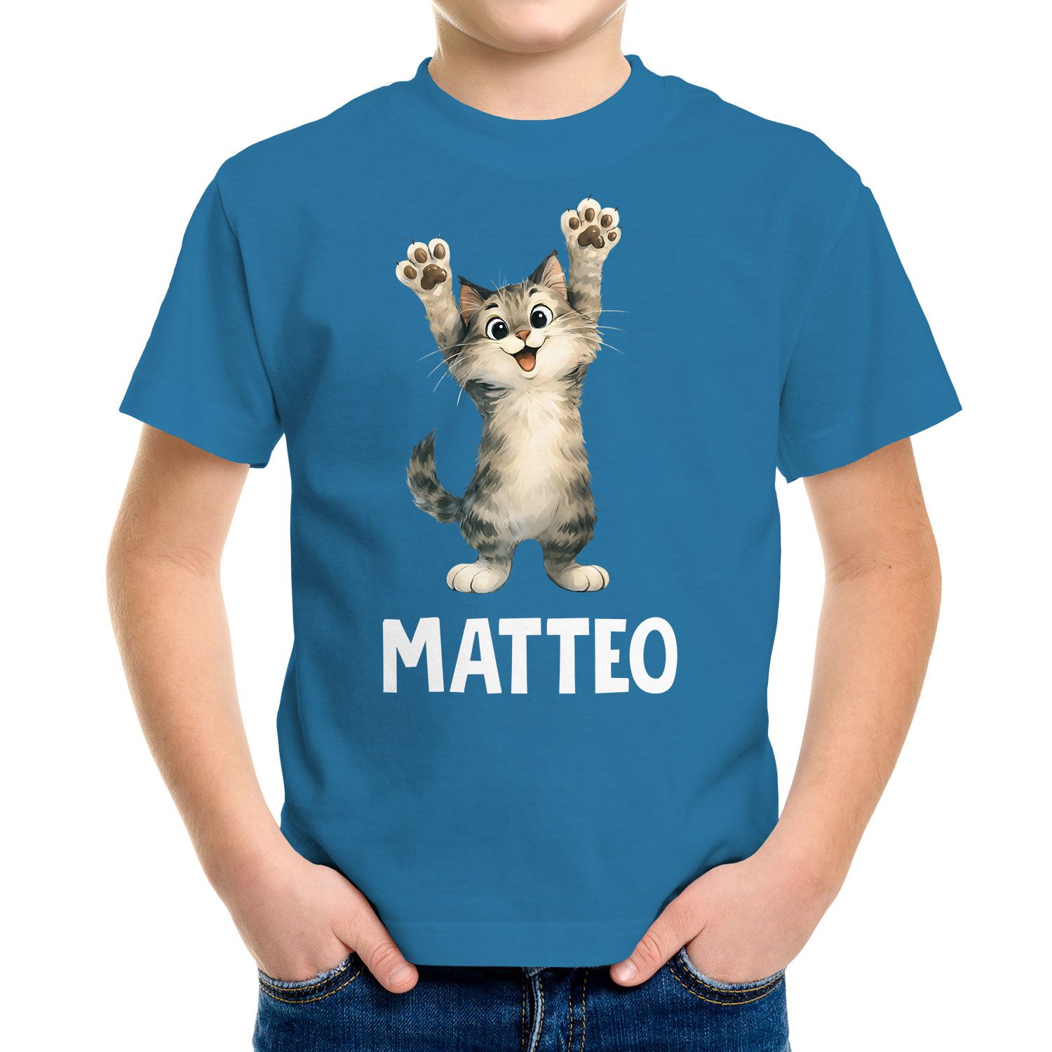Kinder T-Shirt Katze mit Name – personalisiertes Shirt für Jungen – Lustiges Katzenmotiv– Geschenk zum Geburtstag oder Schule Moonworks®
