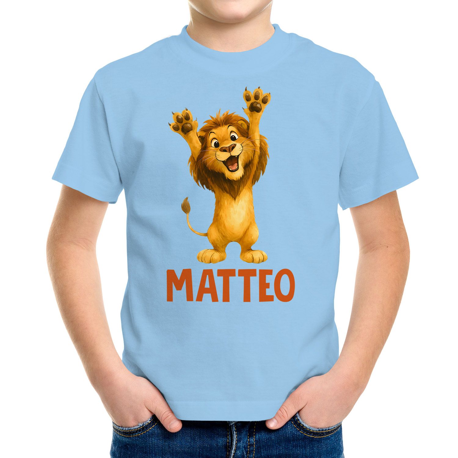 Kinder T-Shirt Löwe mit Name – personalisiertes Shirt für Jungen – Tiermotiv bedruckt – Geschenk zur Einschulung oder Geburtstag Moonworks®