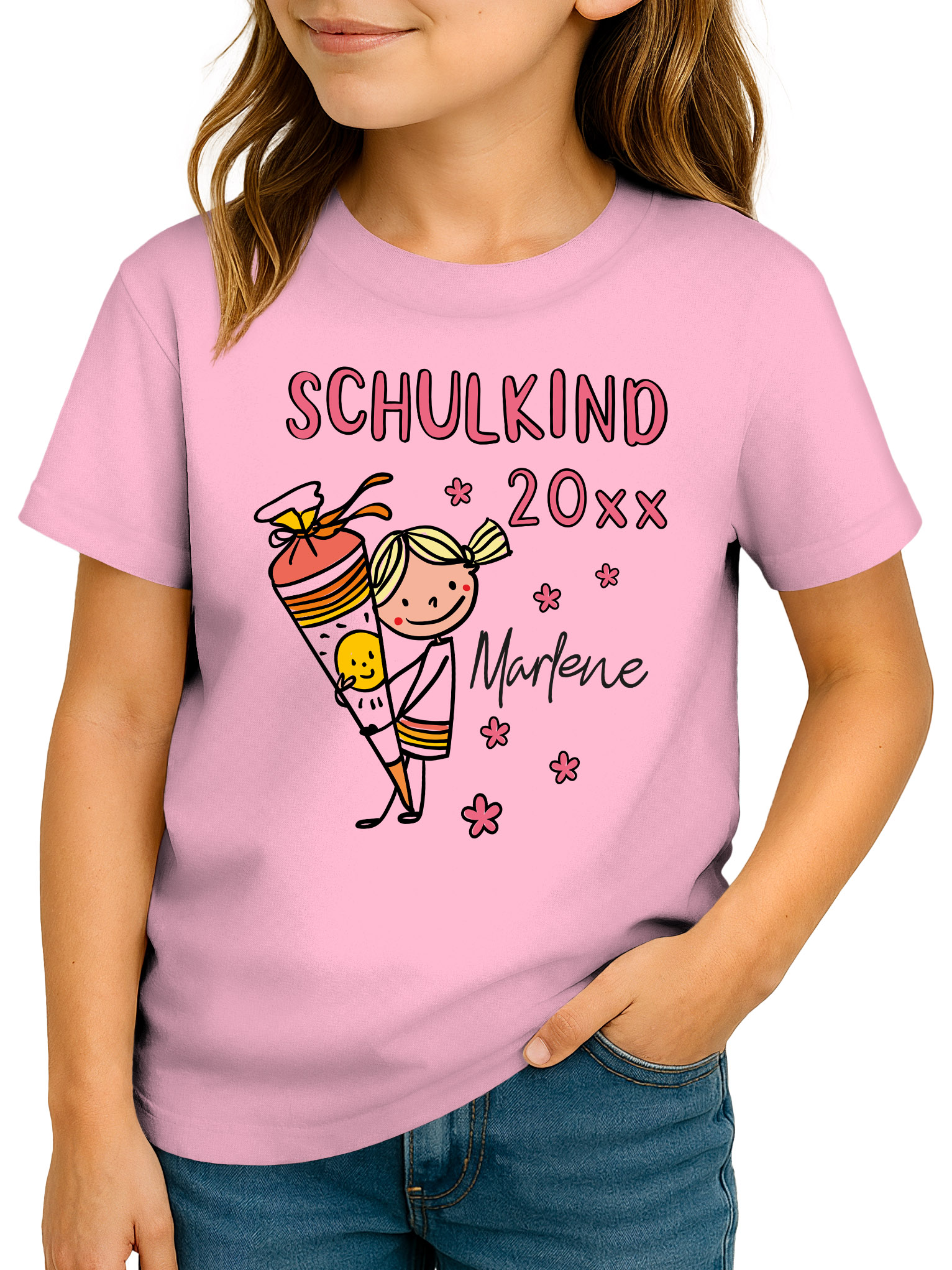- Niedliches personalisierbares T -Shirt zum Schulanfang mit {style_variation_string} Jahreszahl für kleine Mädchen. Mit der Aufschrift "Schulkind" und der {style_variation_string} Jahreszahl das perfekte Outfit zum ersten Schultag 2026. Personalisert mit dem eigenen Namen und Schuljahr {style_variation_string} ist die lustige Strichzeichnung ein echter Hingucker