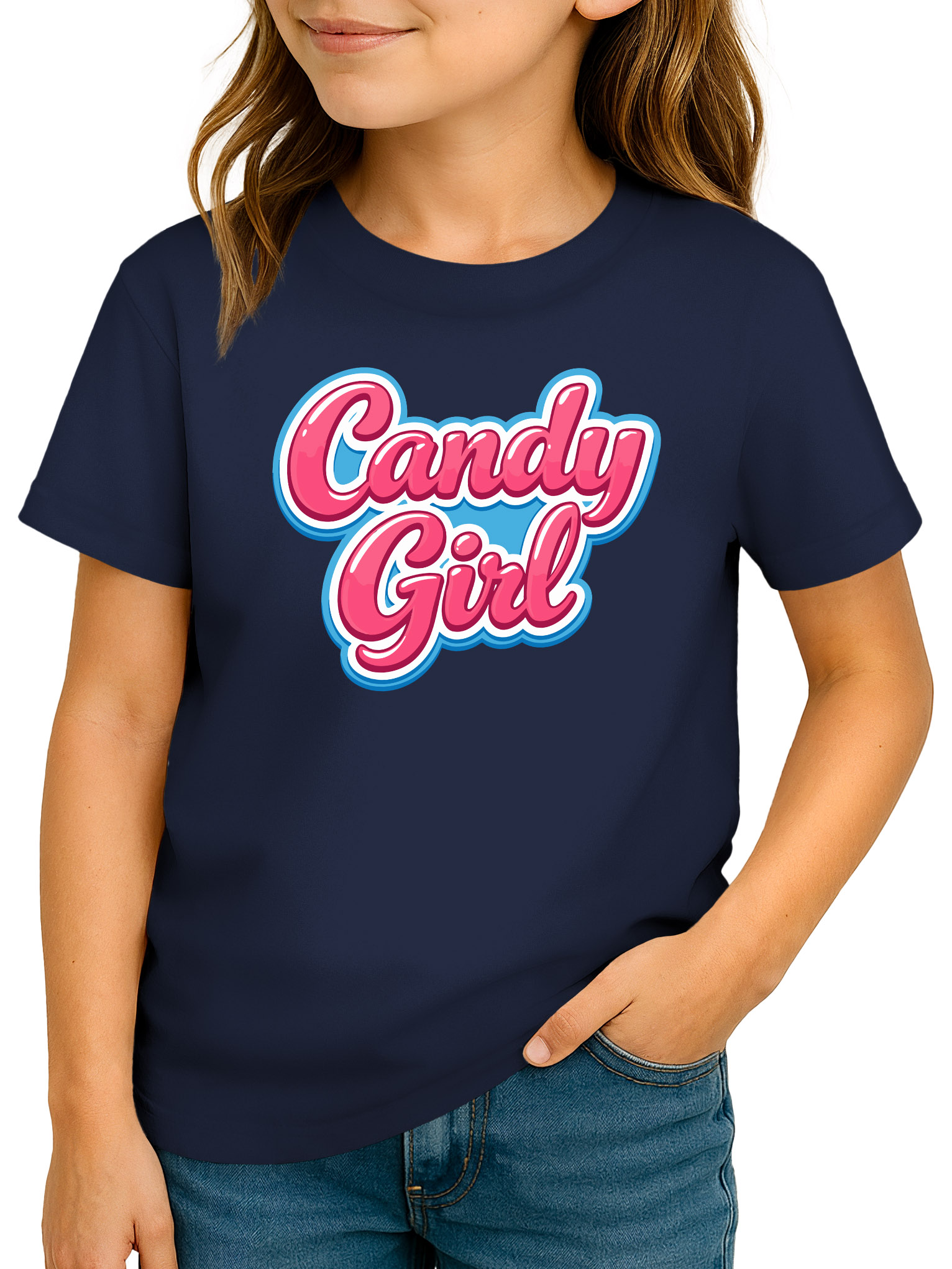 • Mädchen T-Shirt mit „Candy Girl“ Schriftzug – fröhliches Faschingsmotiv für Karneval, Motto-Tage und Kinderfeste, ideal für Mädchen, die bunte Designs lieben. Mit passenden Accessoires ist das Candy-Girl-Shirt auch als Oberteil eines niedlichen DIY-Kostüm eine gute Idee für eine einfache Verkleidung