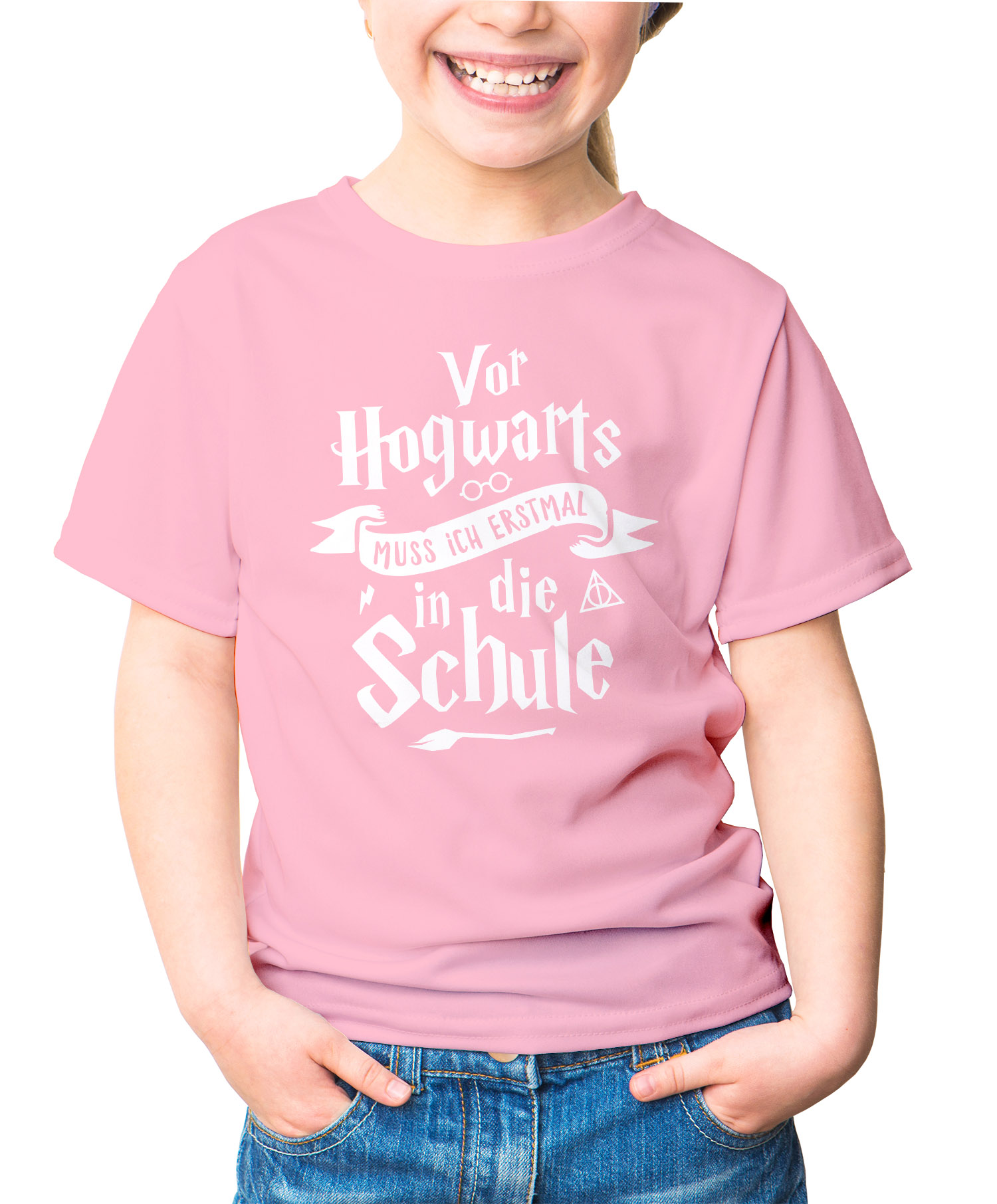 - Cooles T-Shirt Geschenk für kleine Zauber Mädchen zur Einschulung mit Spruch "Vor muss ich erstmal zur Schule "