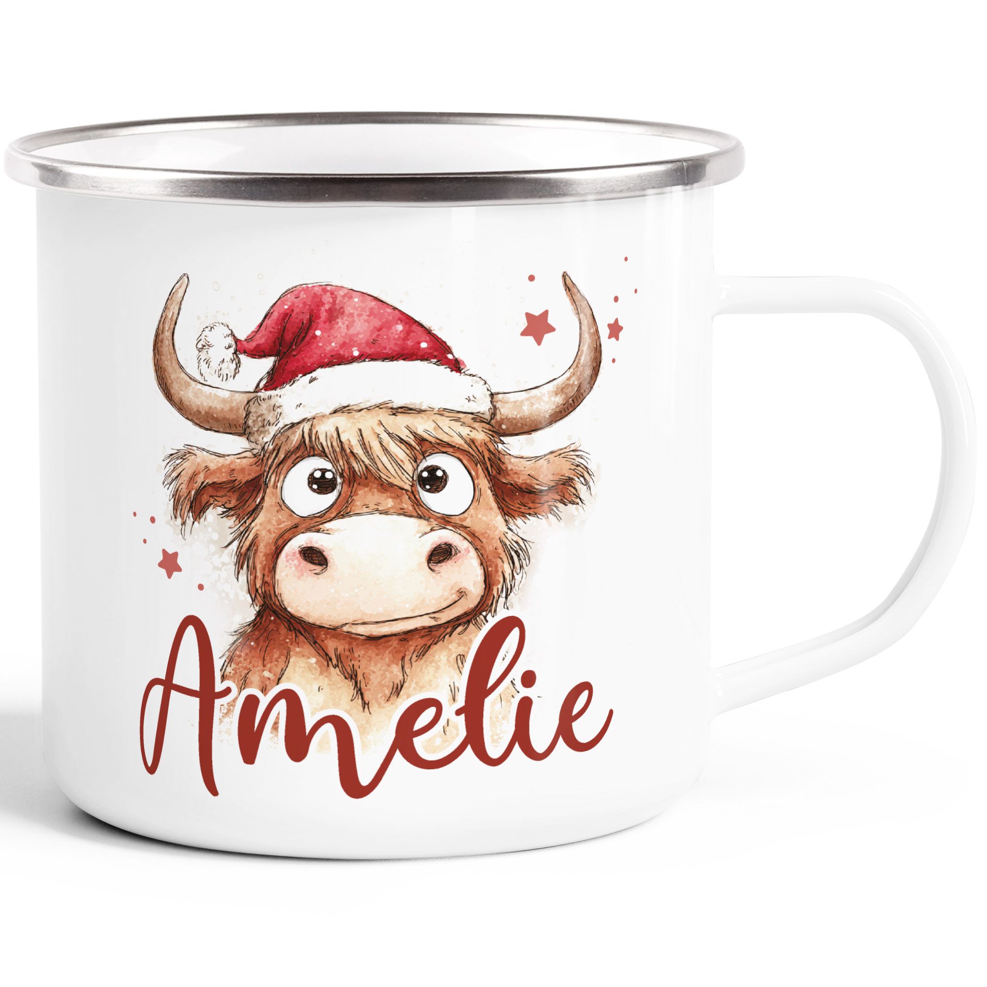 - Niedlicher Emaille-Weihnachtstasse für Kinder: Leichter Emaillebecher mit Name und liebevollem Weihnachtsmotiv – ideal für Kakao, Milch oder Tee. Perfekt als langlebiges Weihnachtsgeschenk für Jungen & Mädchen, auch für Camping, Ausflüge und winterliche Abenteuer