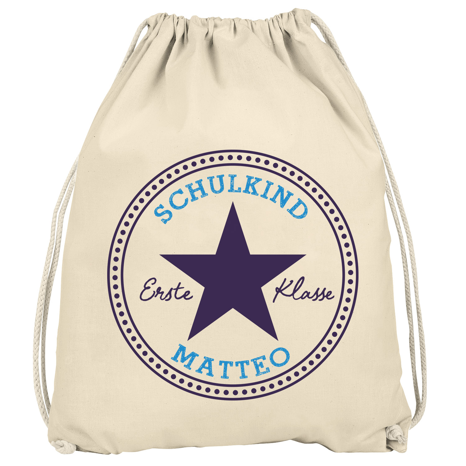 - Mit dem kräftigen „Schulkind – Erste Klasse“-Design ist dieser Turnbeutel mit Stern Aufdruck ein echter Hingucker zur Einschulung. Der personalisierte Aufdruck macht ihn zum praktischen und individuellen Geschenk für Jungen und Mädchen zum Start in die Grundschule