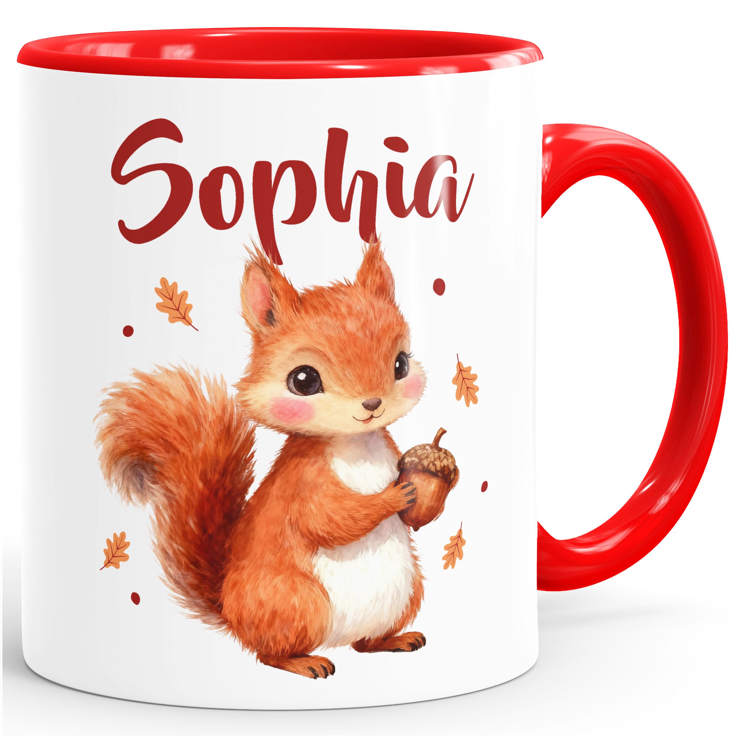 Kindertasse Eichhörnchen Tiermotive personalisierte Namenstasse Keramik für Kinder Jungen Mädchen Namensgeschenke SpecialMe®