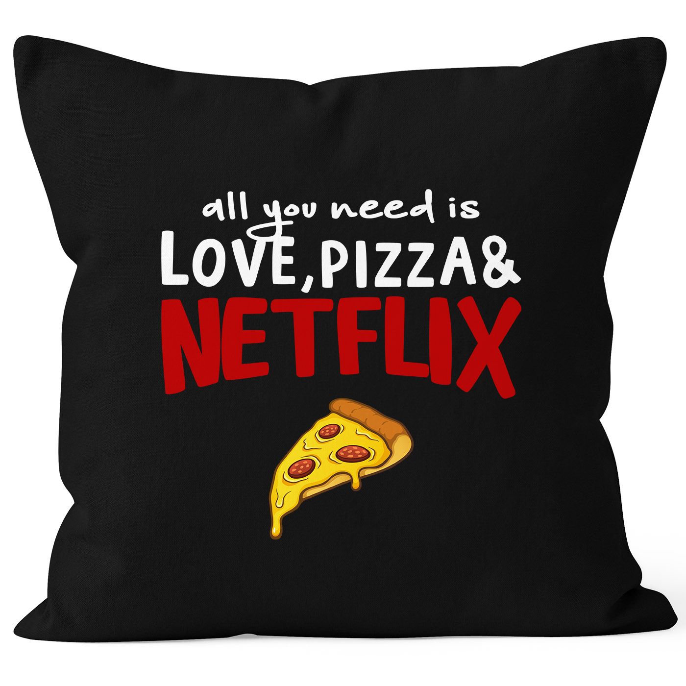 - Weil es manchmal nicht mehr braucht um happy zu sein: "all you need is love, pizza and Netflix" Kissenhülle der Marke Moonworks®