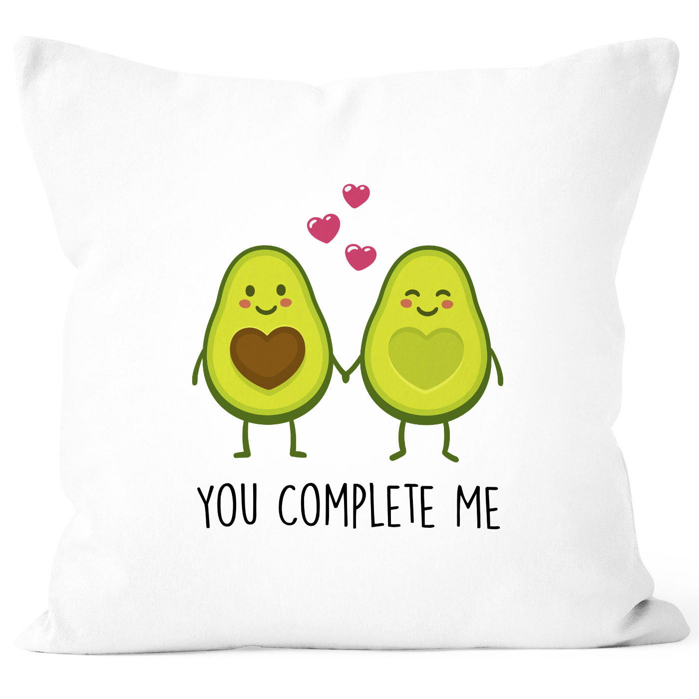 - das perfekte Geschenk zu Valentinstag oder dem Jahres- oder Hochzeitstag: niedliche Kissenhülle mit zwei verliebten Avocado-Hälften und "You complete me" Shcirftzug aus der aktuellen Moonworks® Kollektion