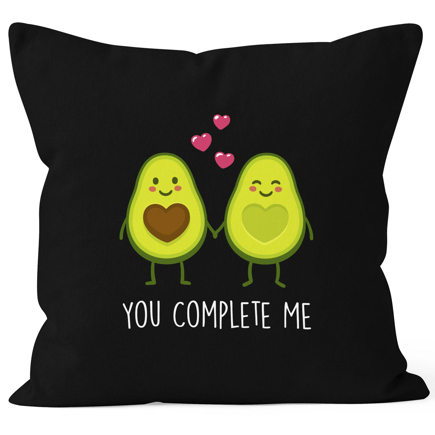 - das perfekte Geschenk zu Valentinstag oder dem Jahres- oder Hochzeitstag: niedliche Kissenhülle mit zwei verliebten Avocado-Hälften und "You complete me" Shcirftzug aus der aktuellen Moonworks® Kollektion