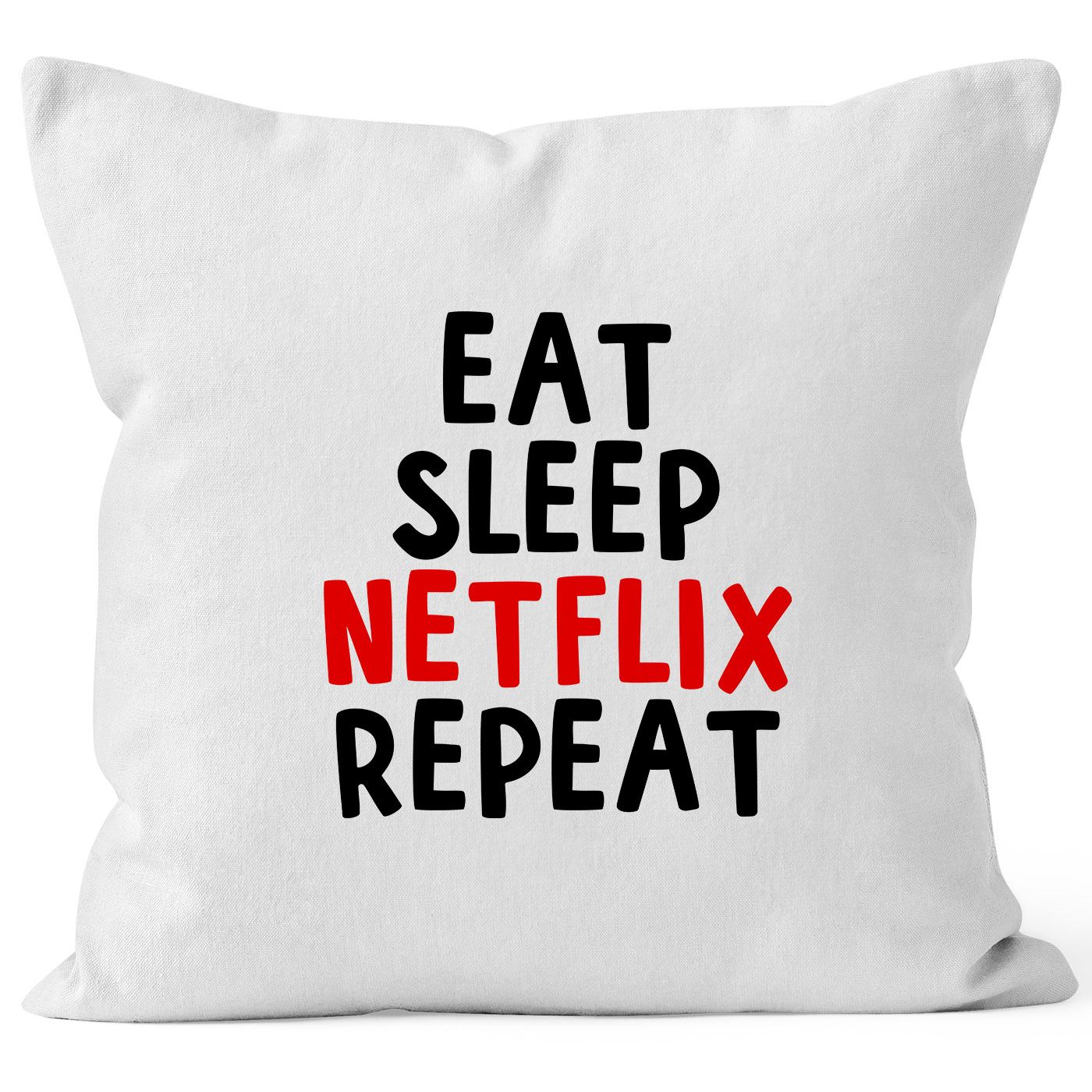 - Der perfekte Sonntag? Jogginghose, Couch, `ne gute PIzza & Netflix! Mehr braucht es manchmal nicht! Passend zum gechillten Tag gibt`s jetzt von Moonworks® die "Eat sleep Netflix repeat" Kissenhülle! Perfekt für alle Serienjunkies!