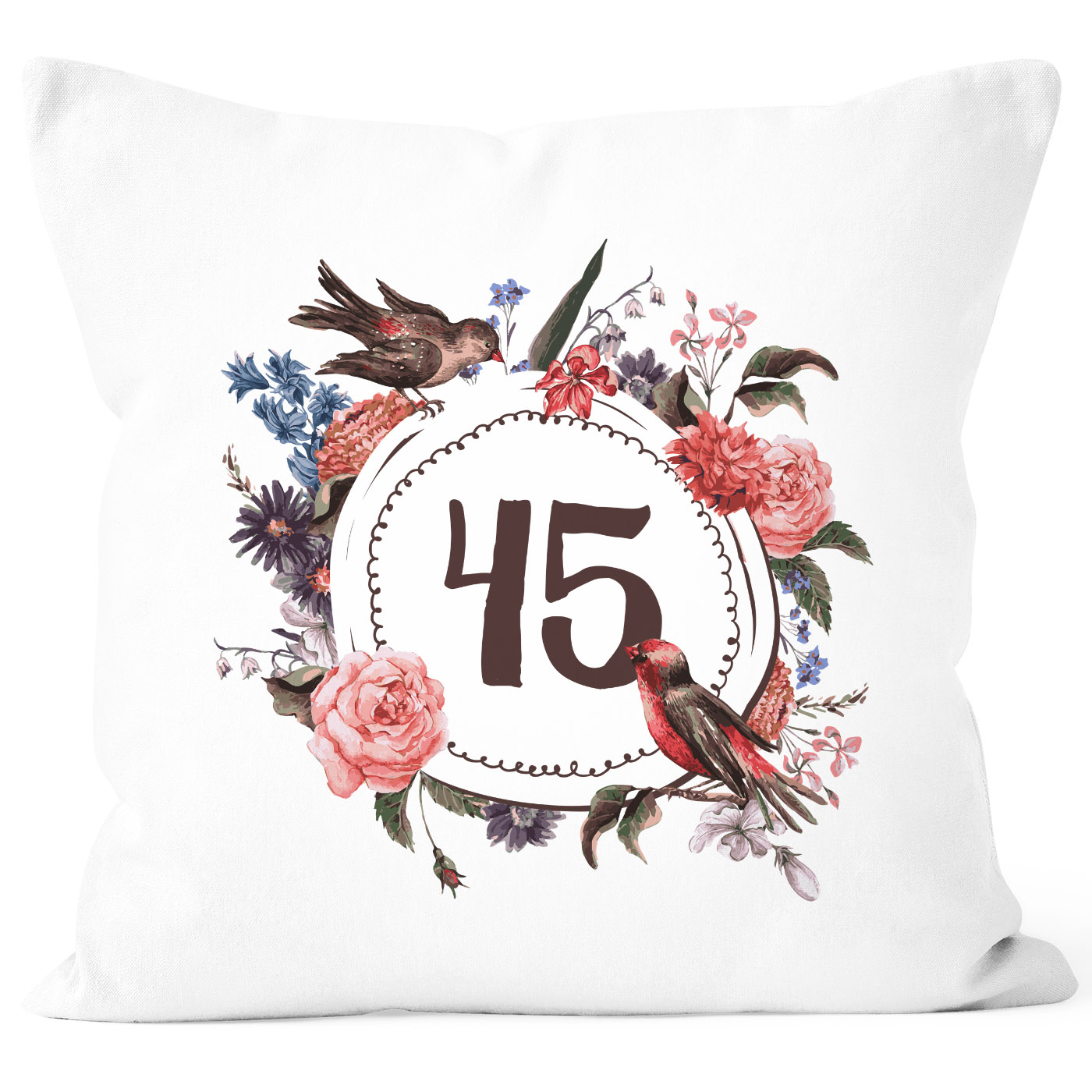 - ob zum runden & vollen Geburtstag oder der geknackten Schnapszahl: diese Kissenhülle mit großer "{style_variation_string}" Jahreszahl und dem wunderschönen Blumen und Vögel Print von Moonworks® ist eine wunderschöne Geschenkidee - besonders Frauen dürften von dieser Blütenpracht begeistert sein!