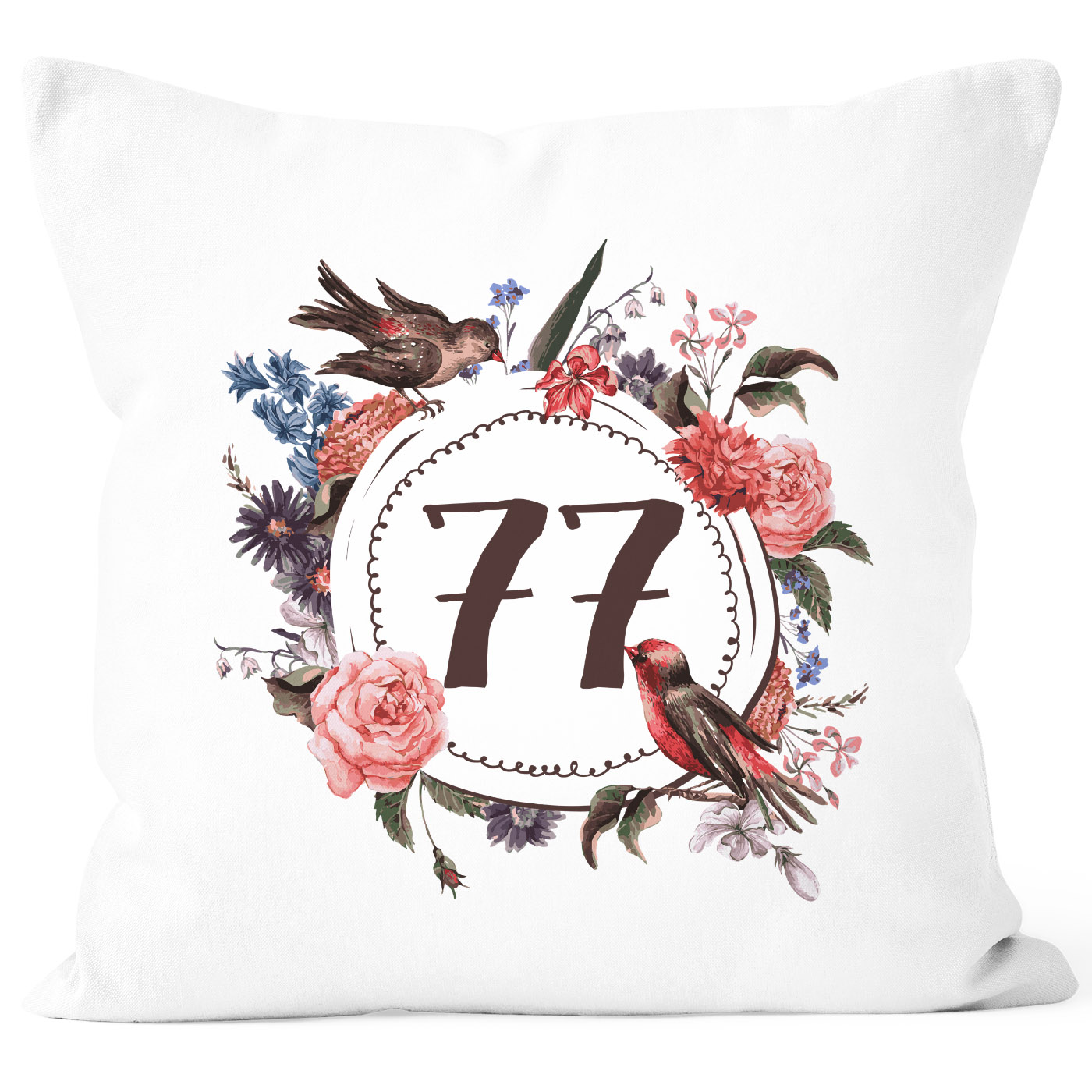 - ob zum runden & vollen Geburtstag oder der geknackten Schnapszahl: diese Kissenhülle mit großer "{style_variation_string}" Jahreszahl und dem wunderschönen Blumen und Vögel Print von Moonworks® ist eine wunderschöne Geschenkidee - besonders Frauen dürften von dieser Blütenpracht begeistert sein!